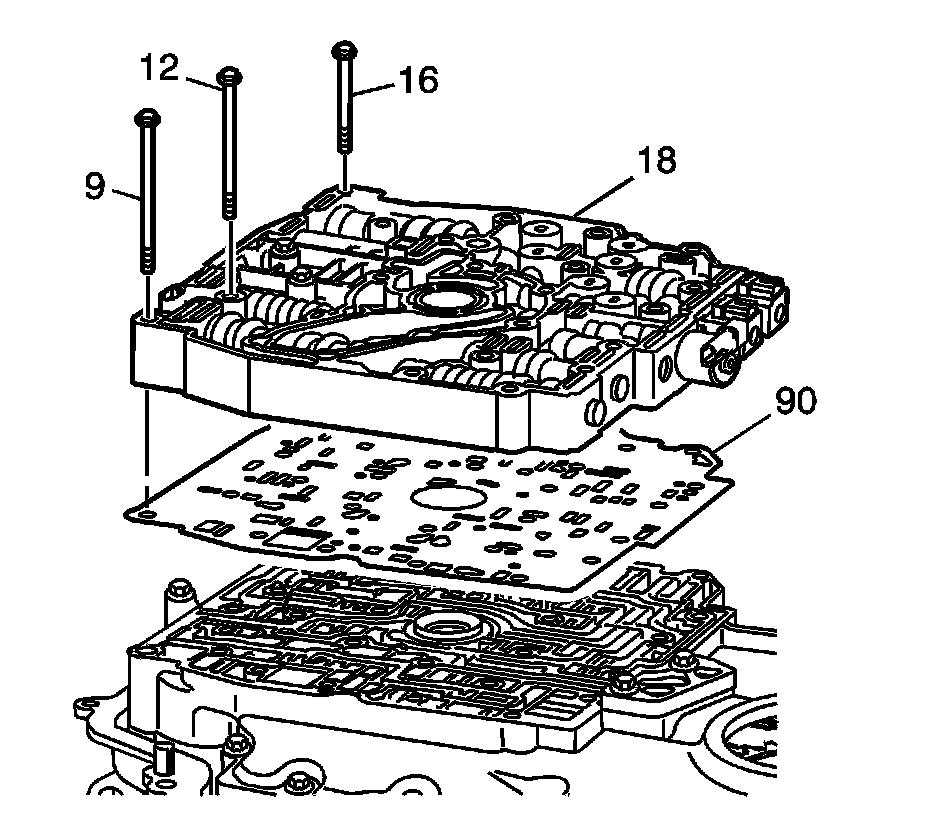 2. Install the control valve body assembly (18) onto the spacer plate assembly (90).