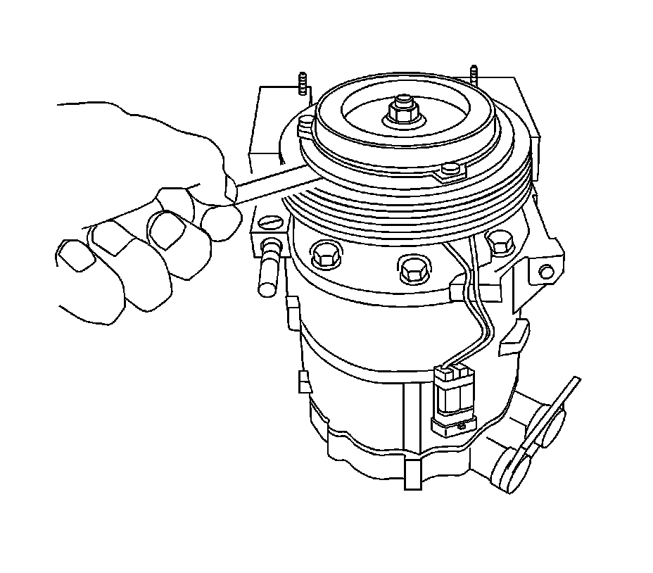 8. Install the previously used clutch shim if removed from the A/C compressor shaft.