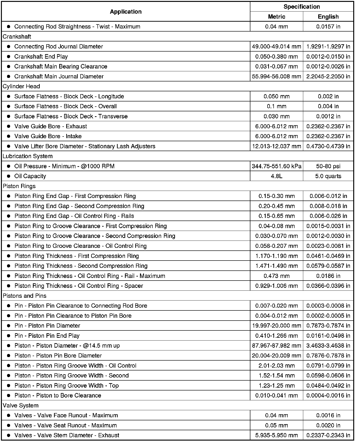 Engine Mechanical Specifications (2.4L)