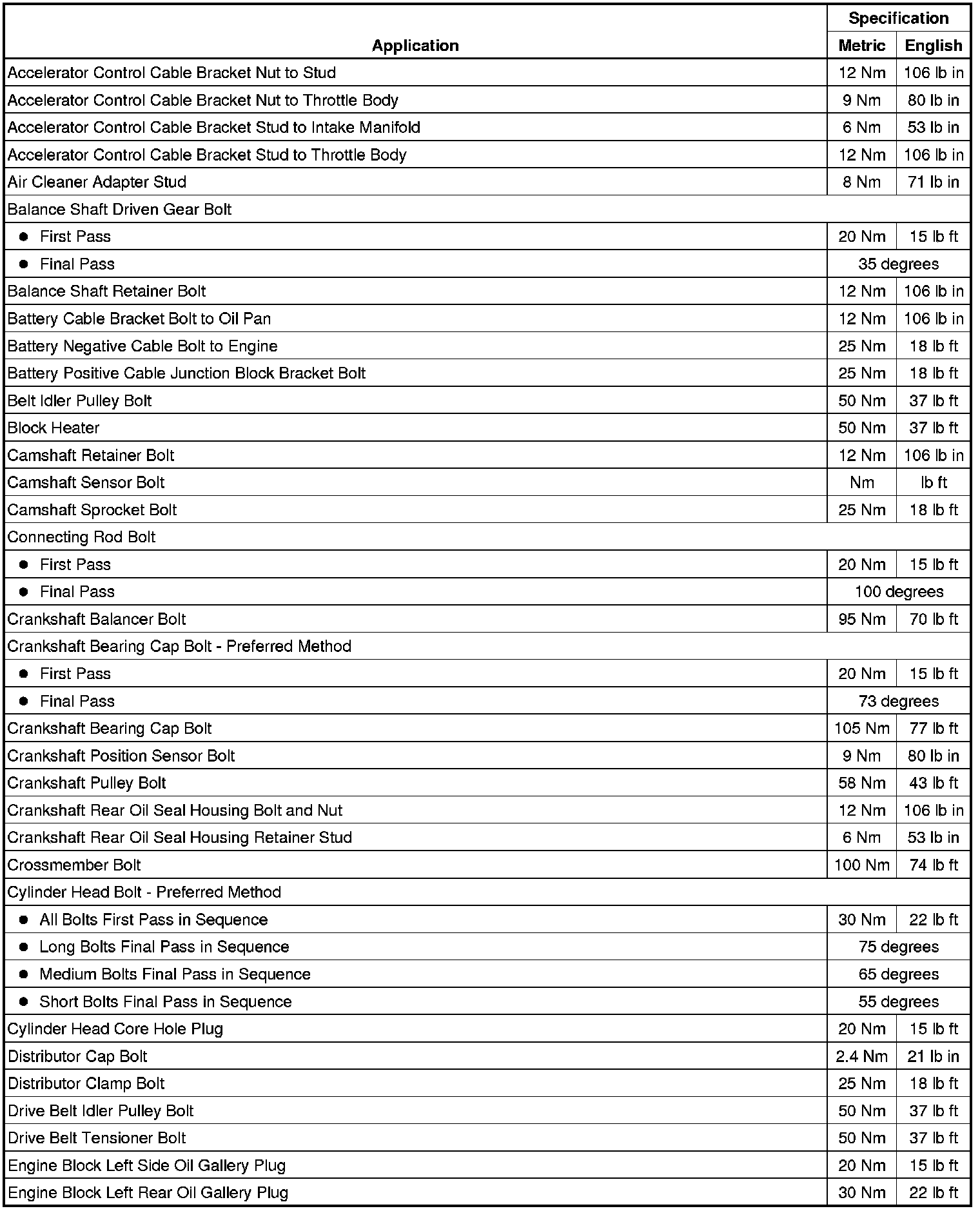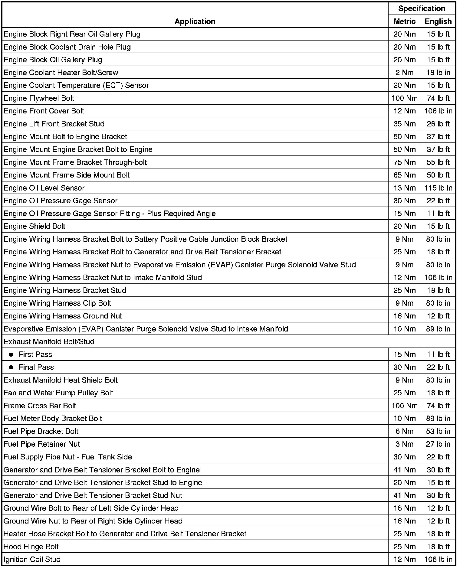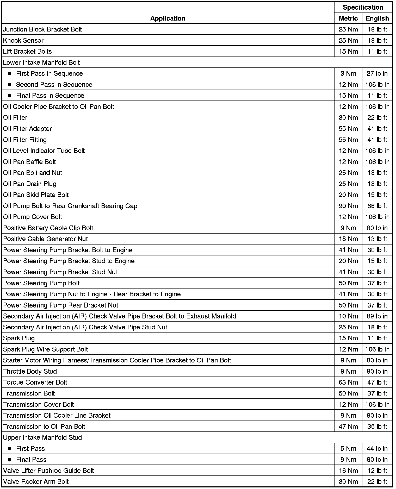 Fastener Tightening Specifications
