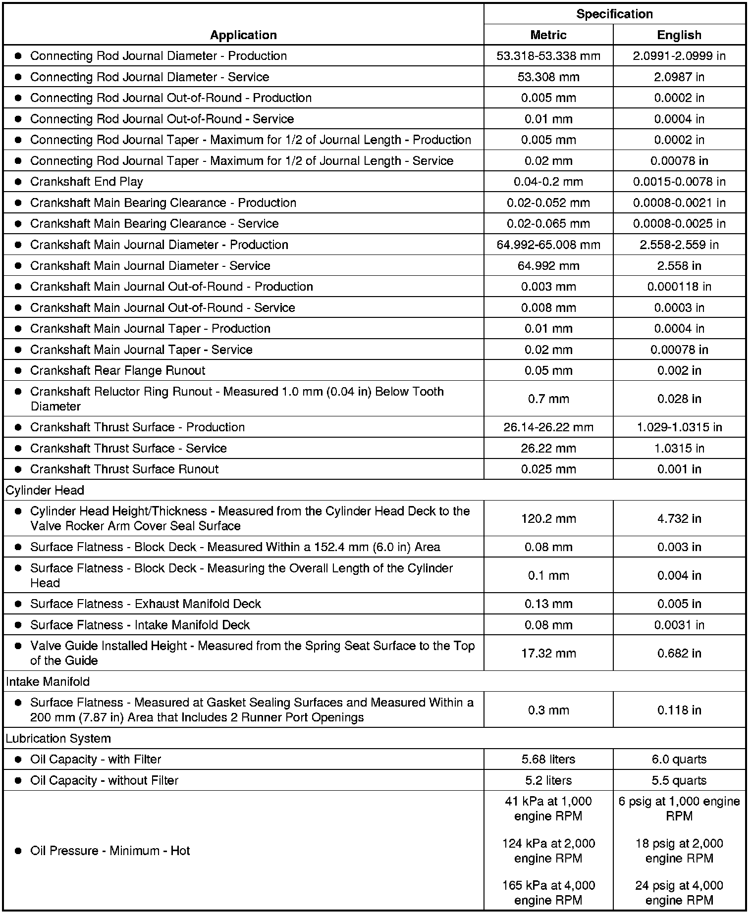 Engine Mechanical Specifications (RPO LMG VIN 0)