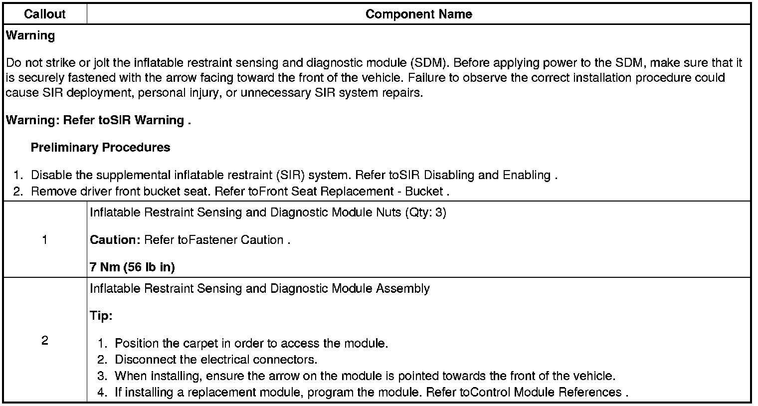 Inflatable Restraint Sensing and Diagnostic Module Replacement