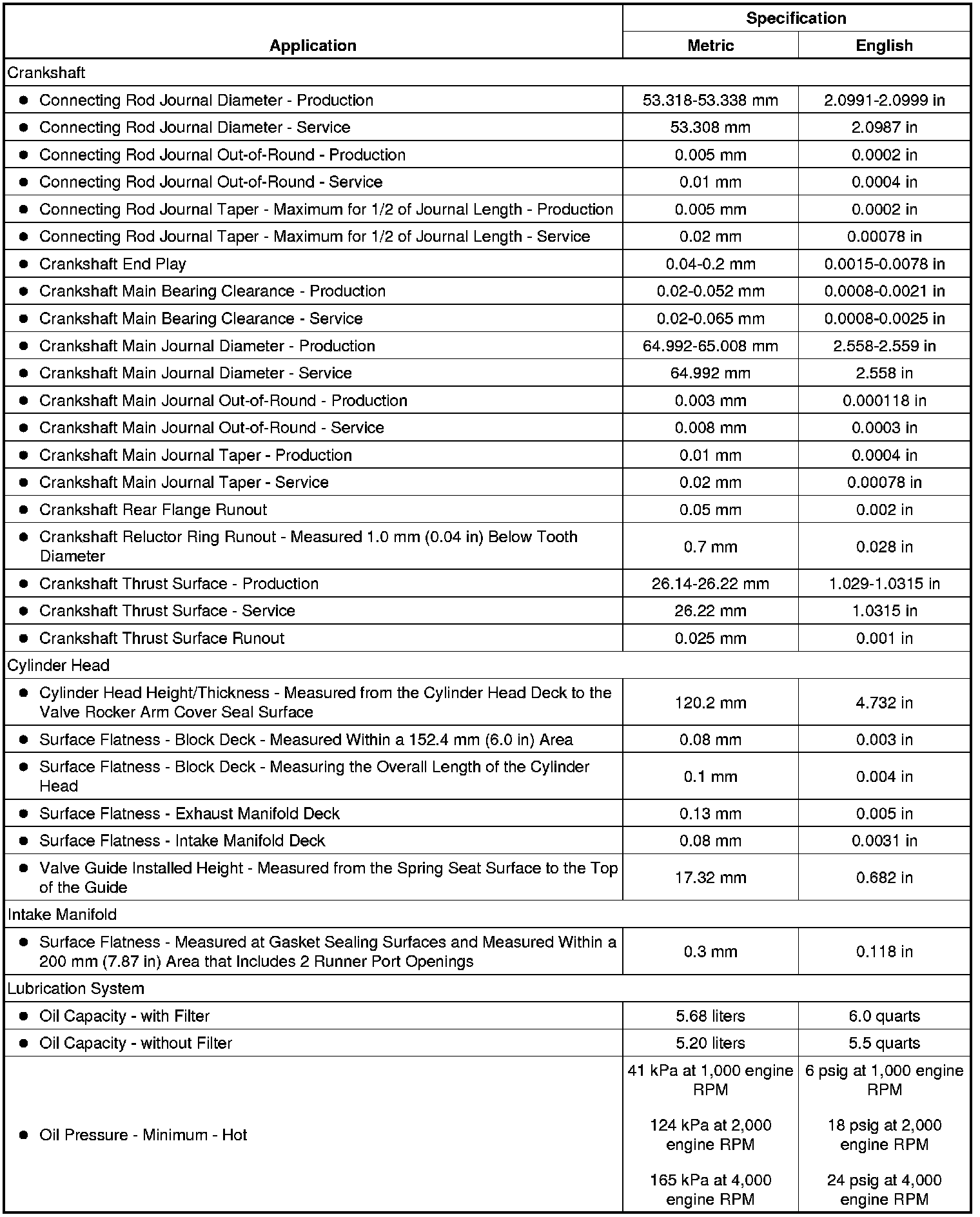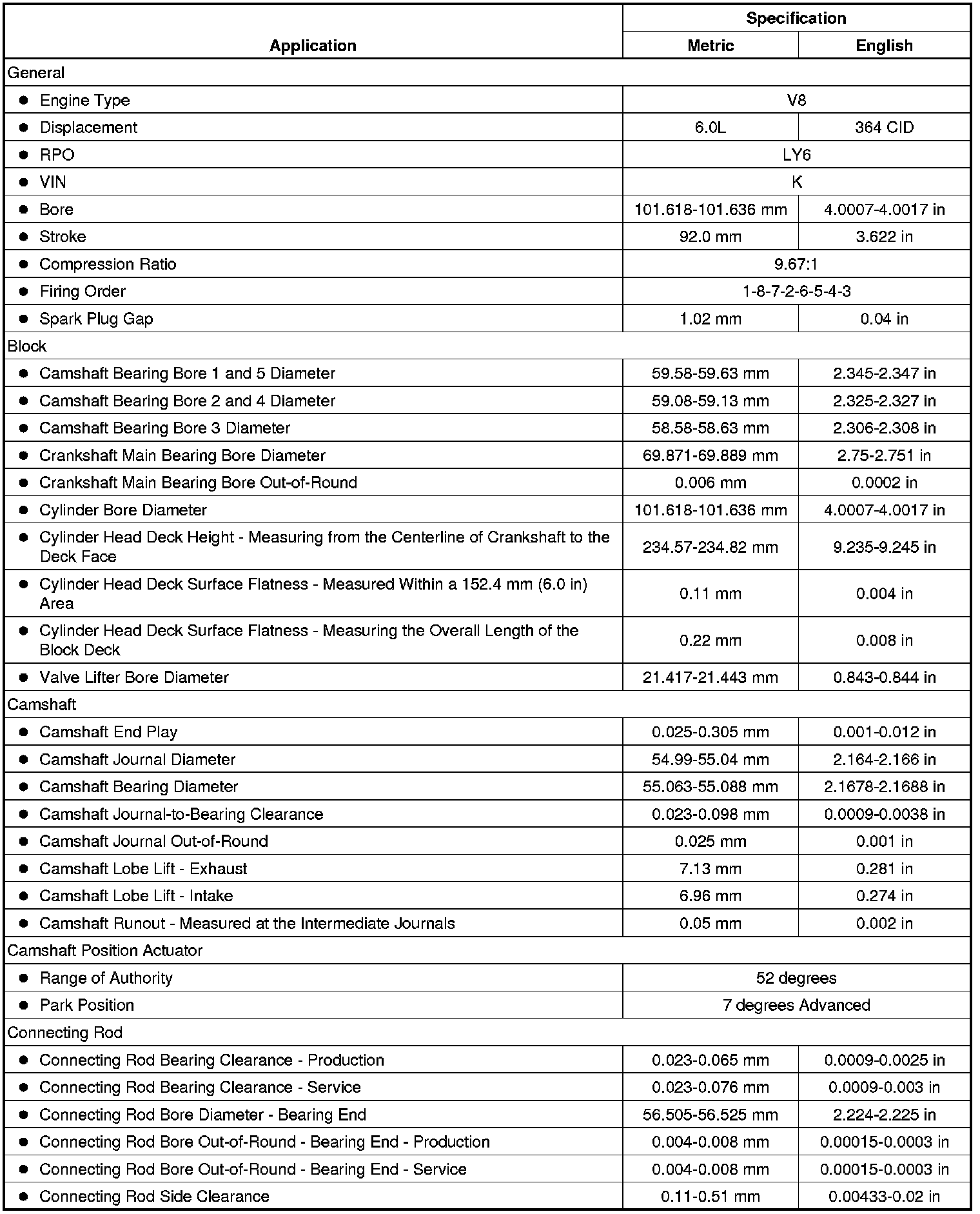 Engine Mechanical Specifications (RPO LY6 VIN K)