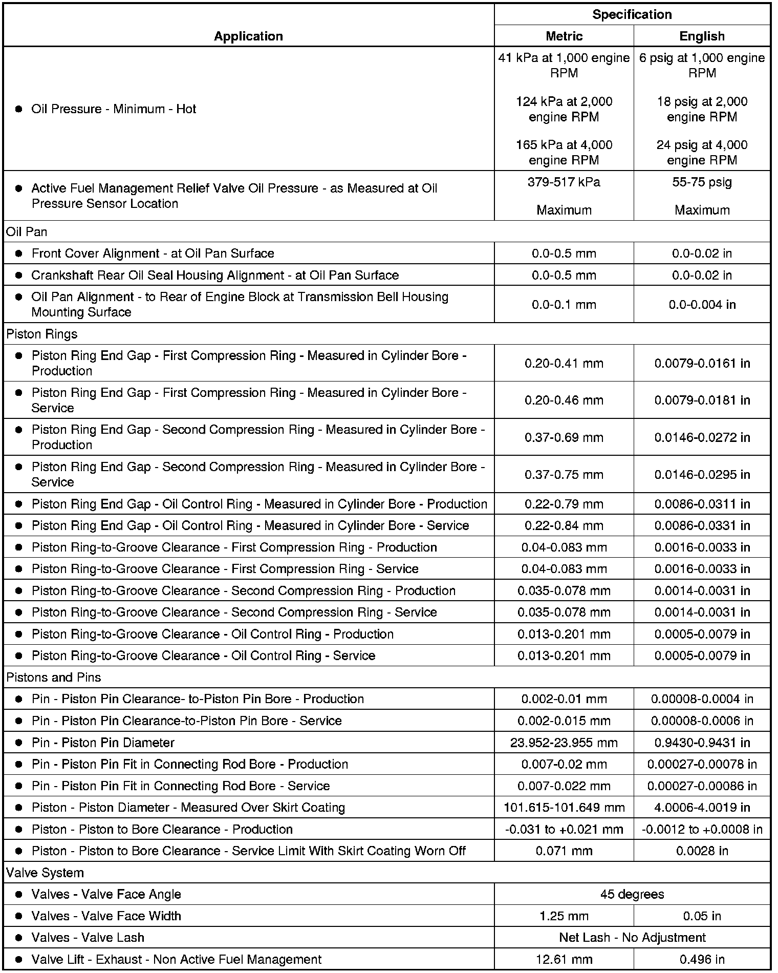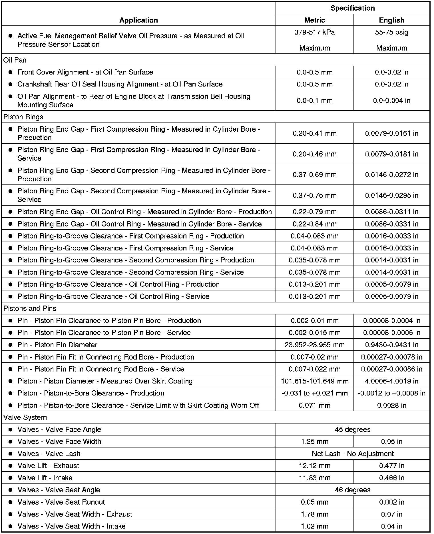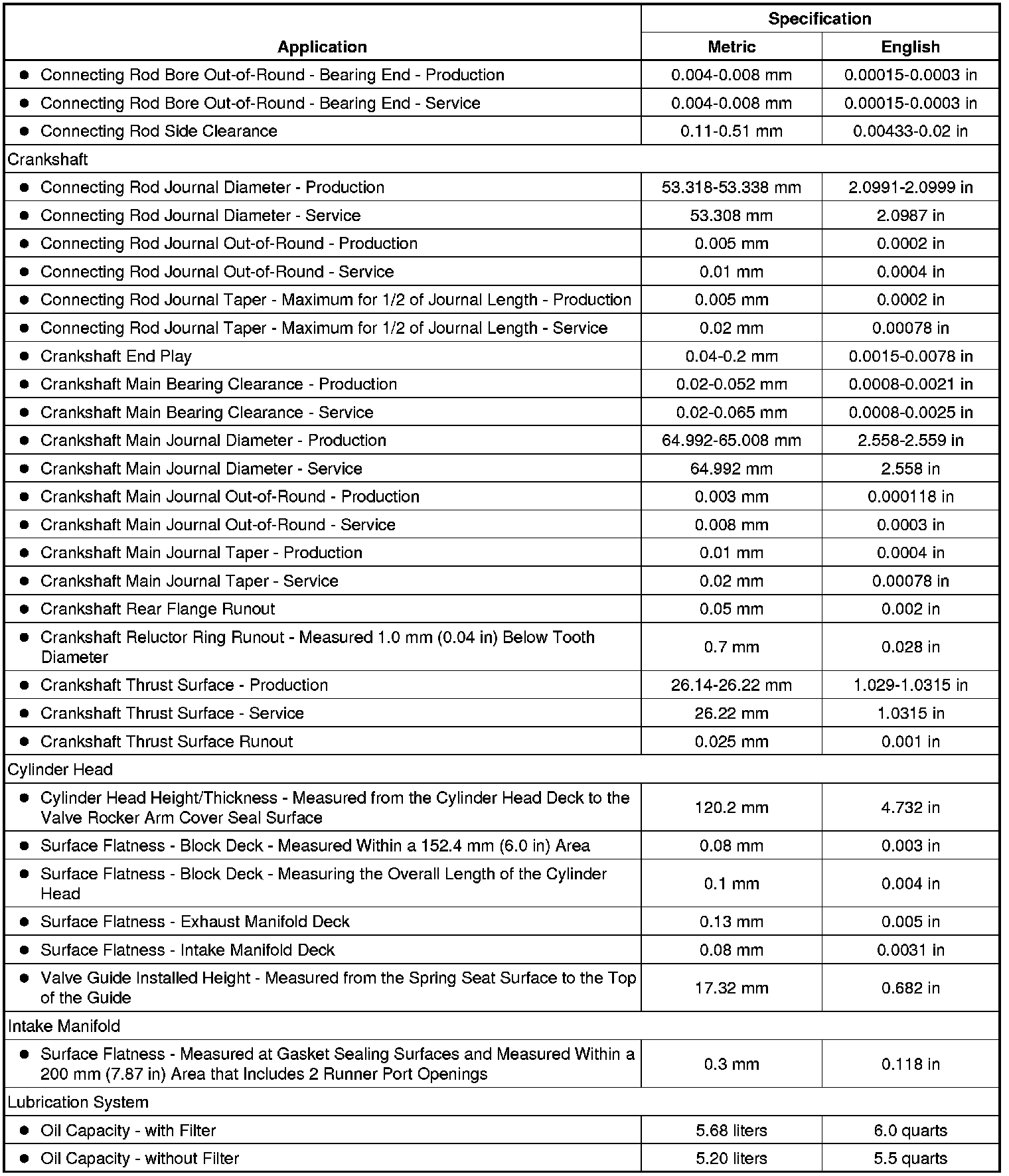 Engine Mechanical Specifications