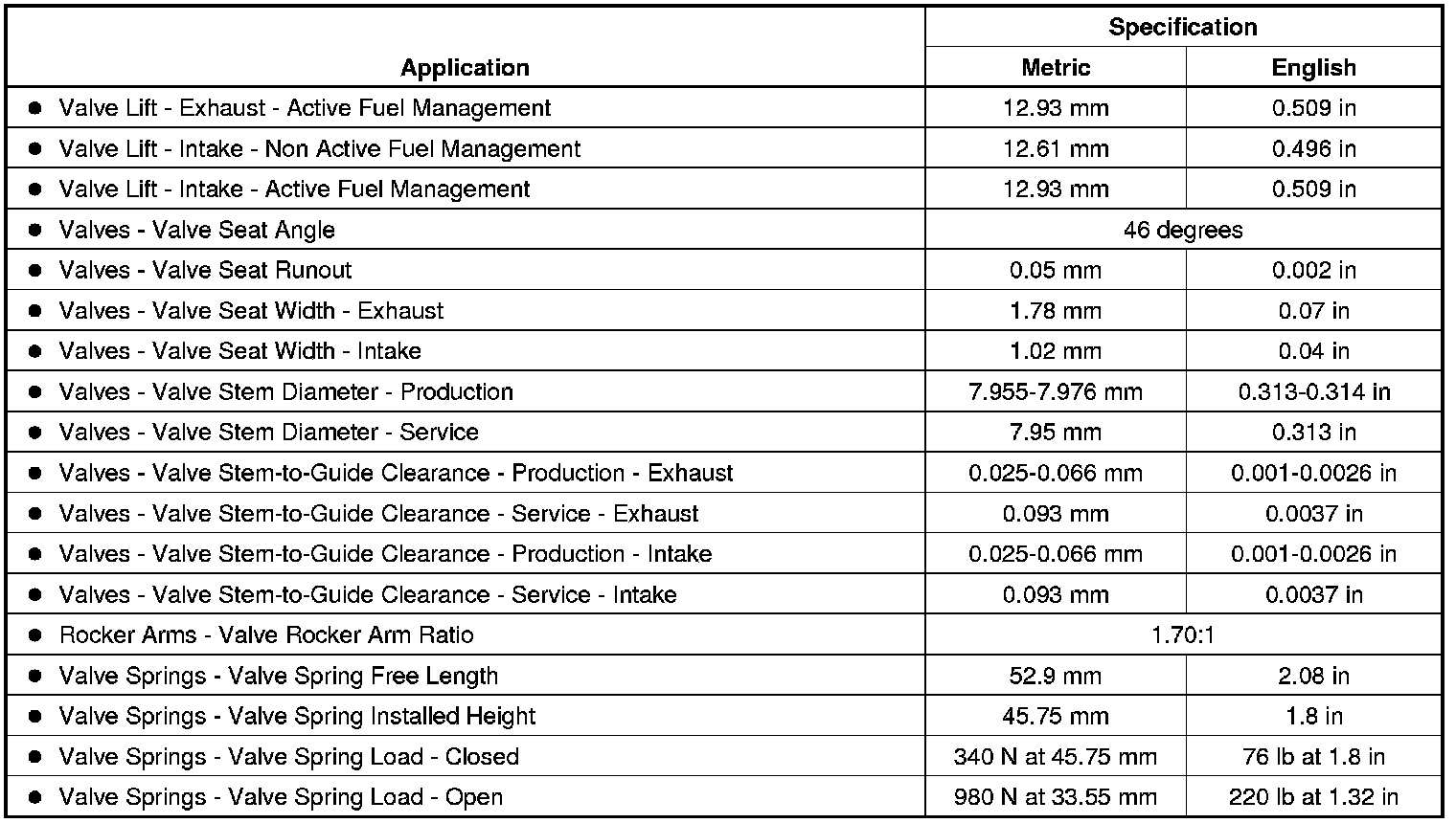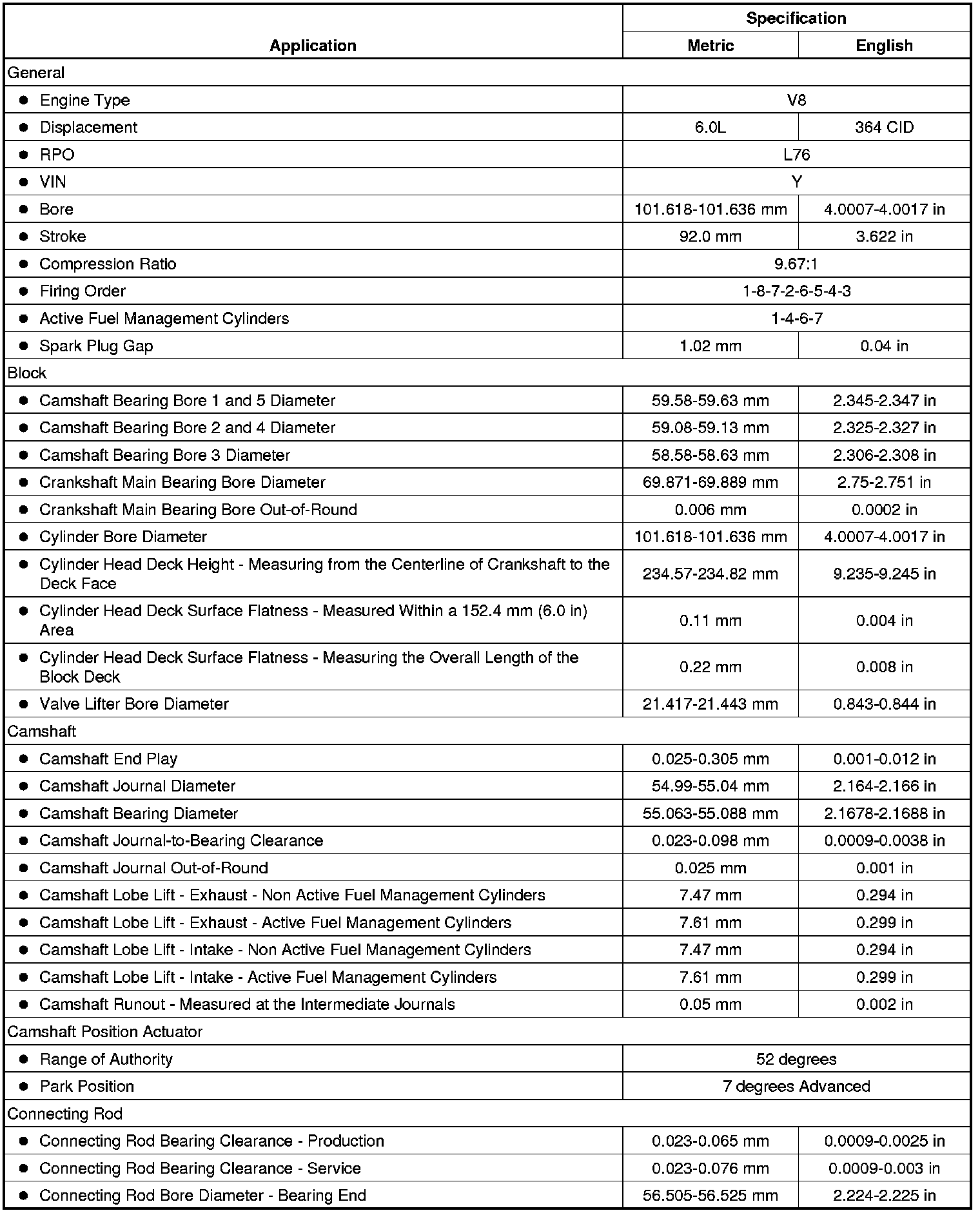 Engine Mechanical Specifications (RPO L76 VIN Y)