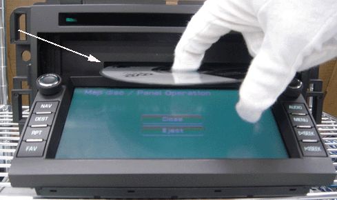 9. The navigation radio will automatically eject the map DVD. Remove the ejected disc.