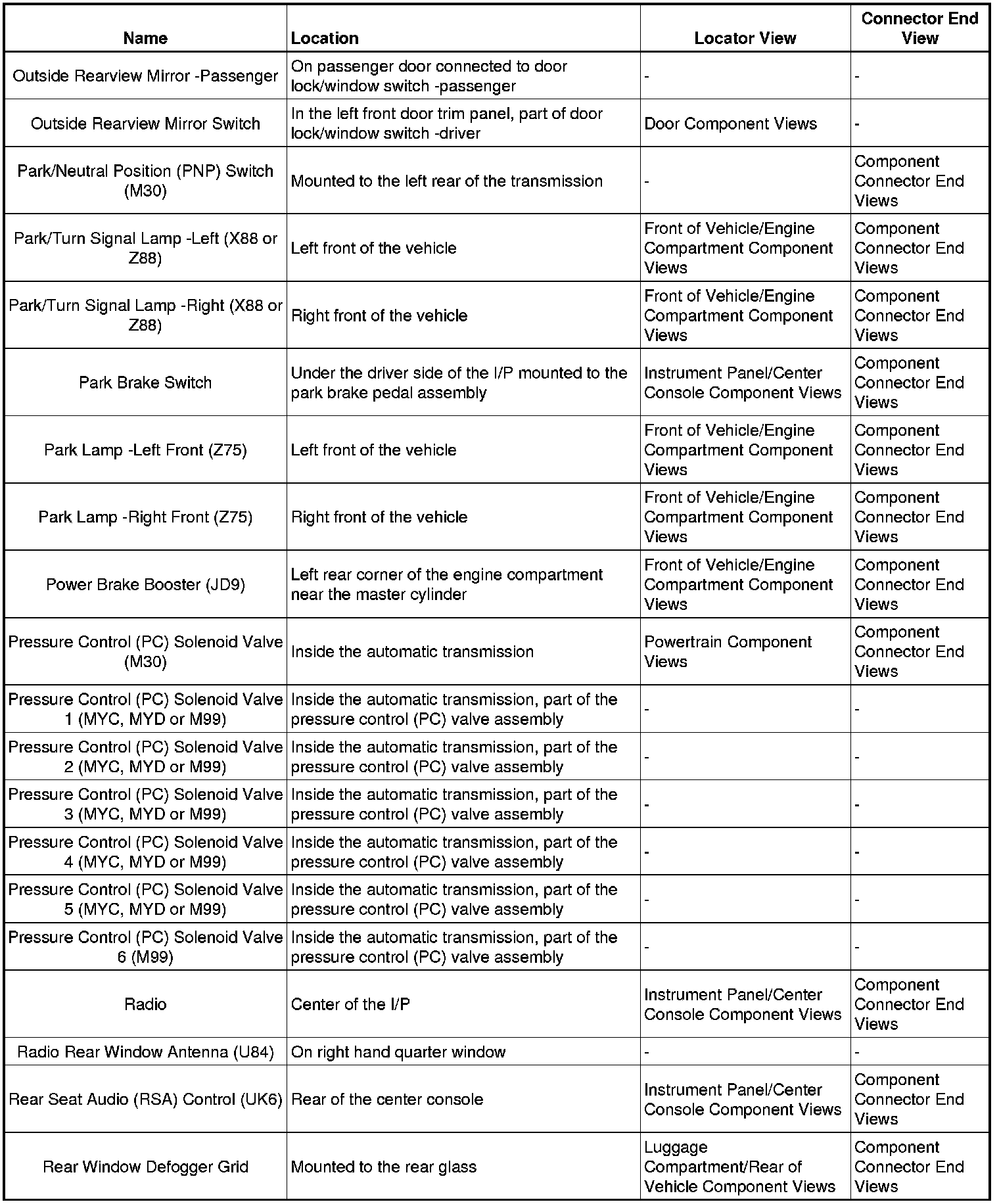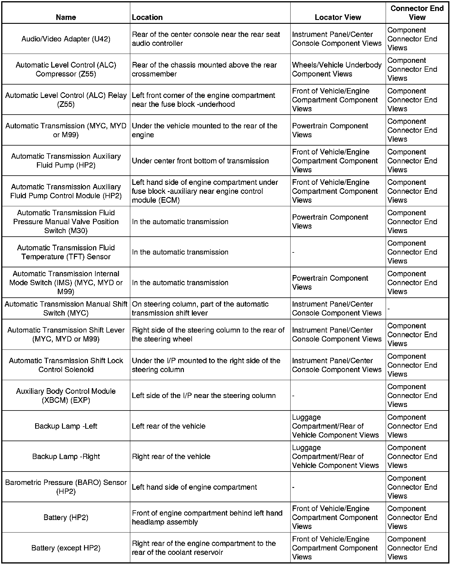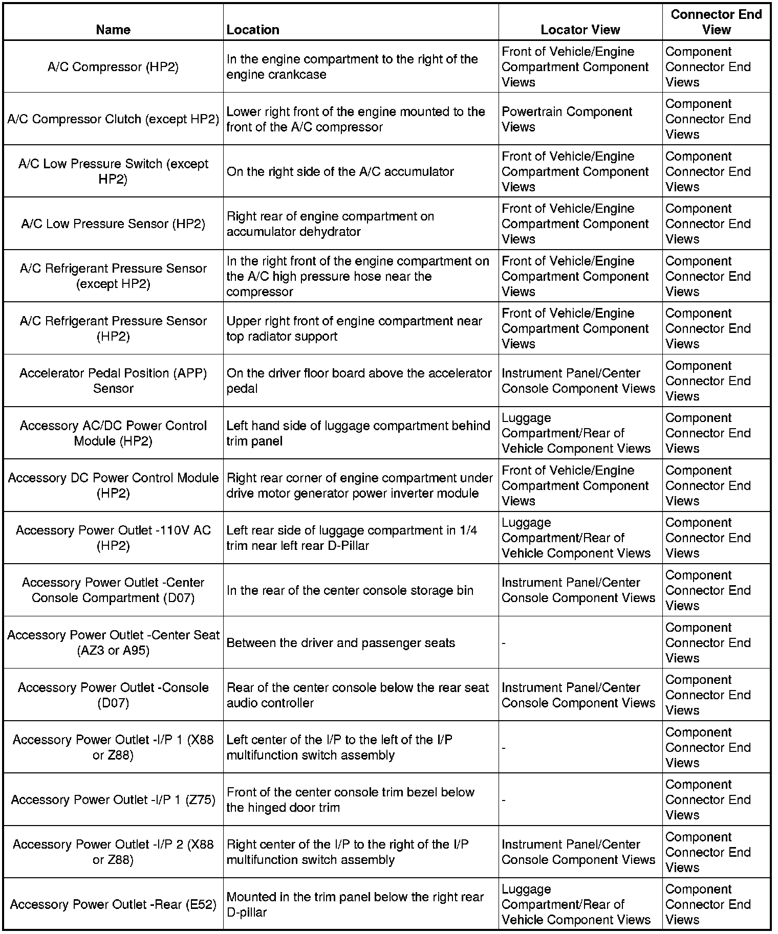 Master Electrical Component ListA/C - AC:
