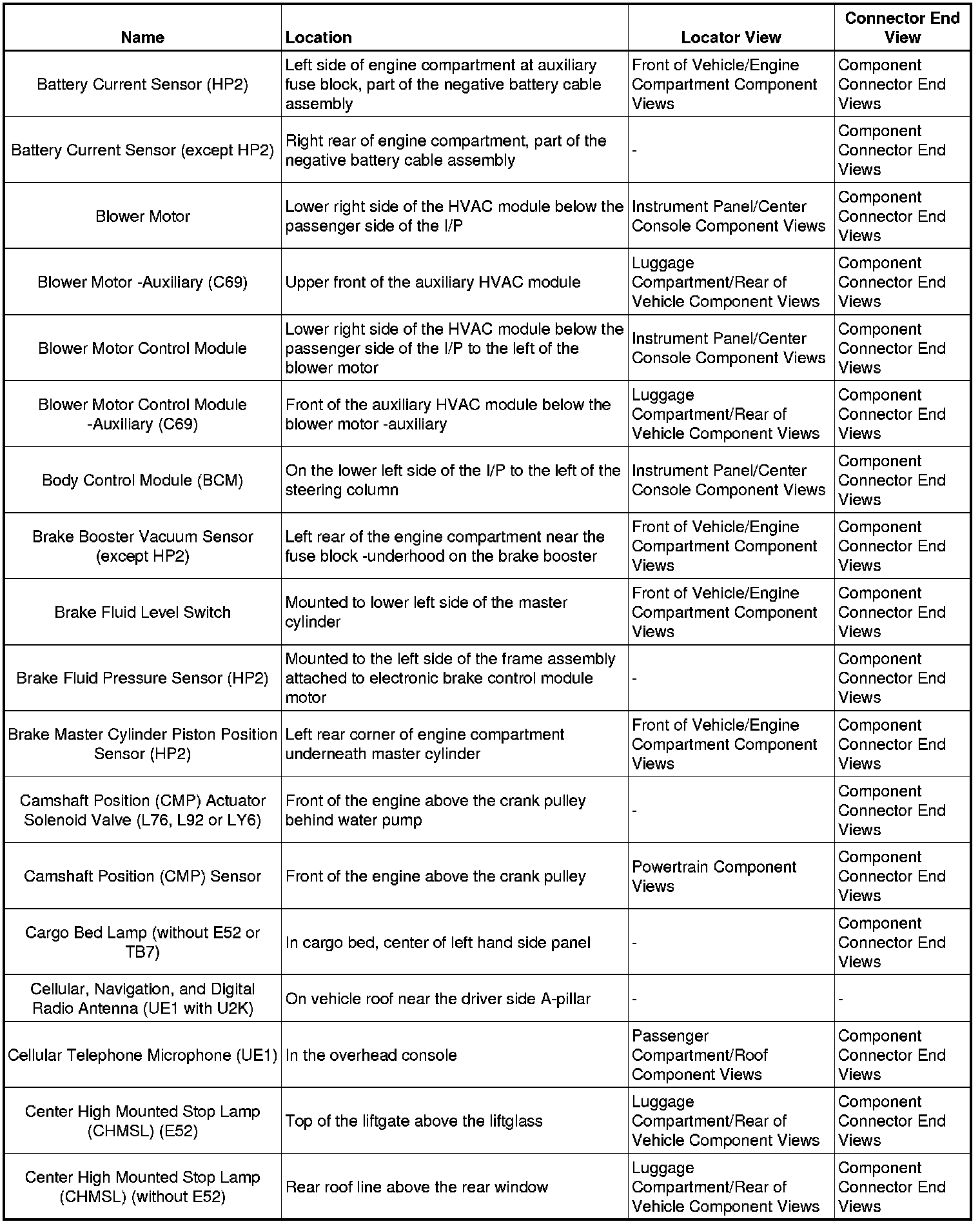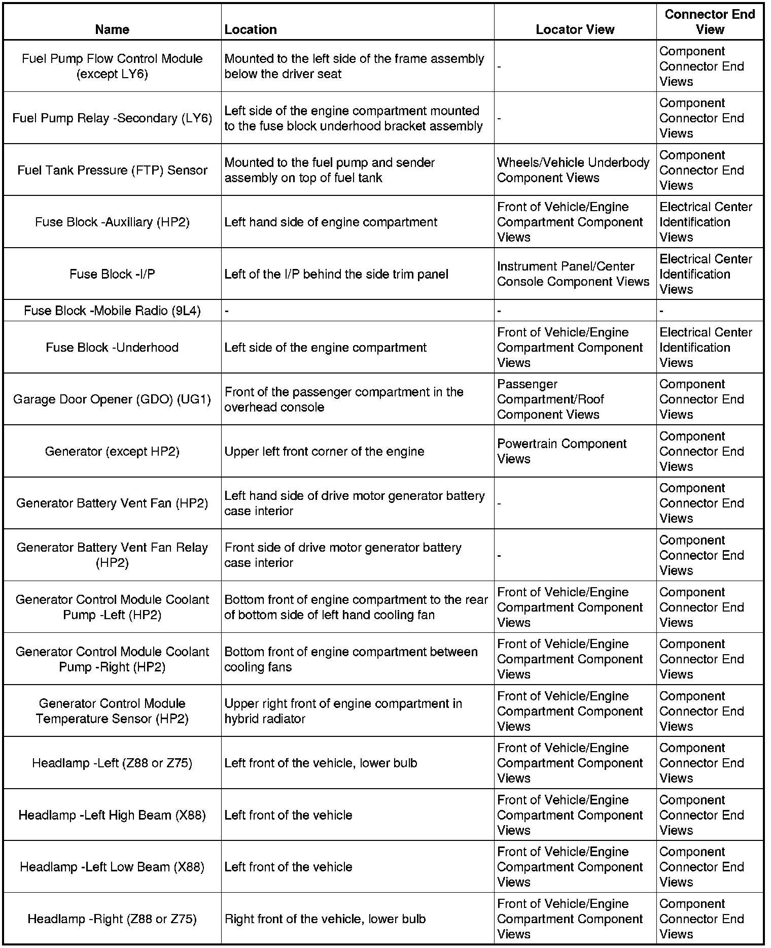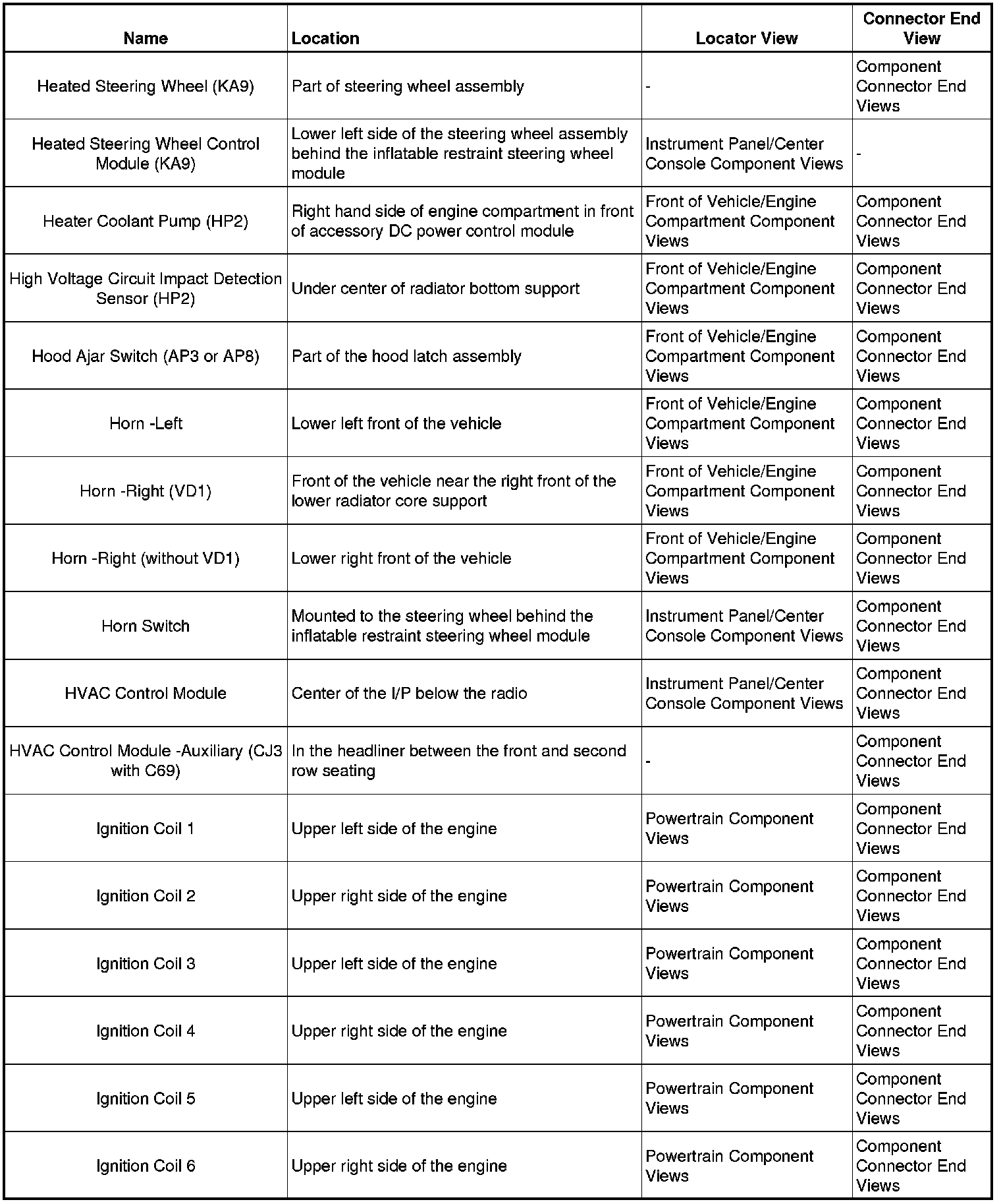 Master Electrical Component ListA/C - AC: