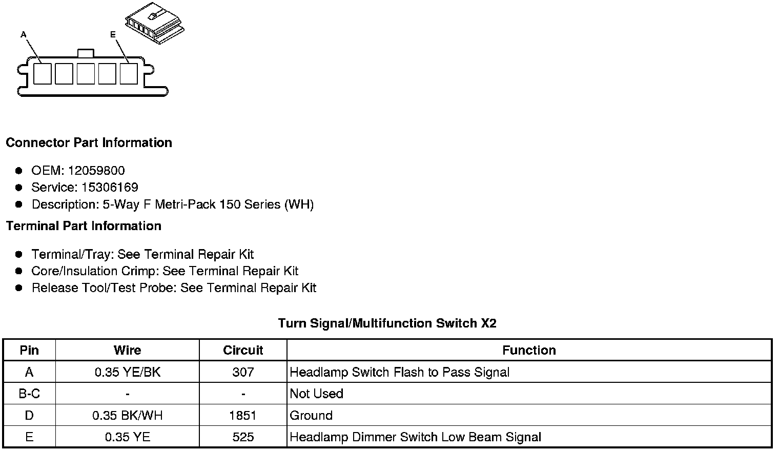 Turn Signal/Multifunction Switch X4 (C25)