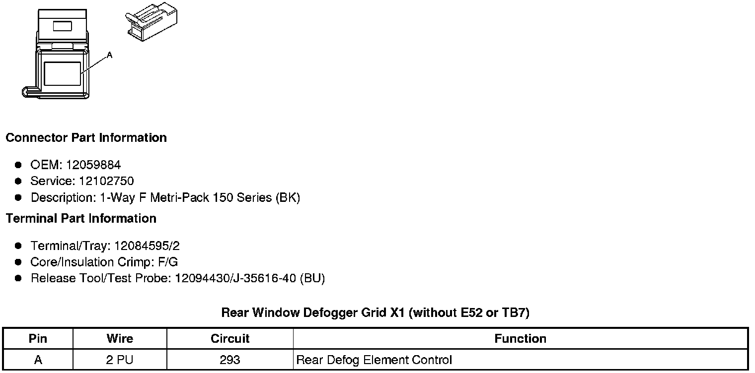 Rear Window Defogger Grid X1 (without E52 or TB7)