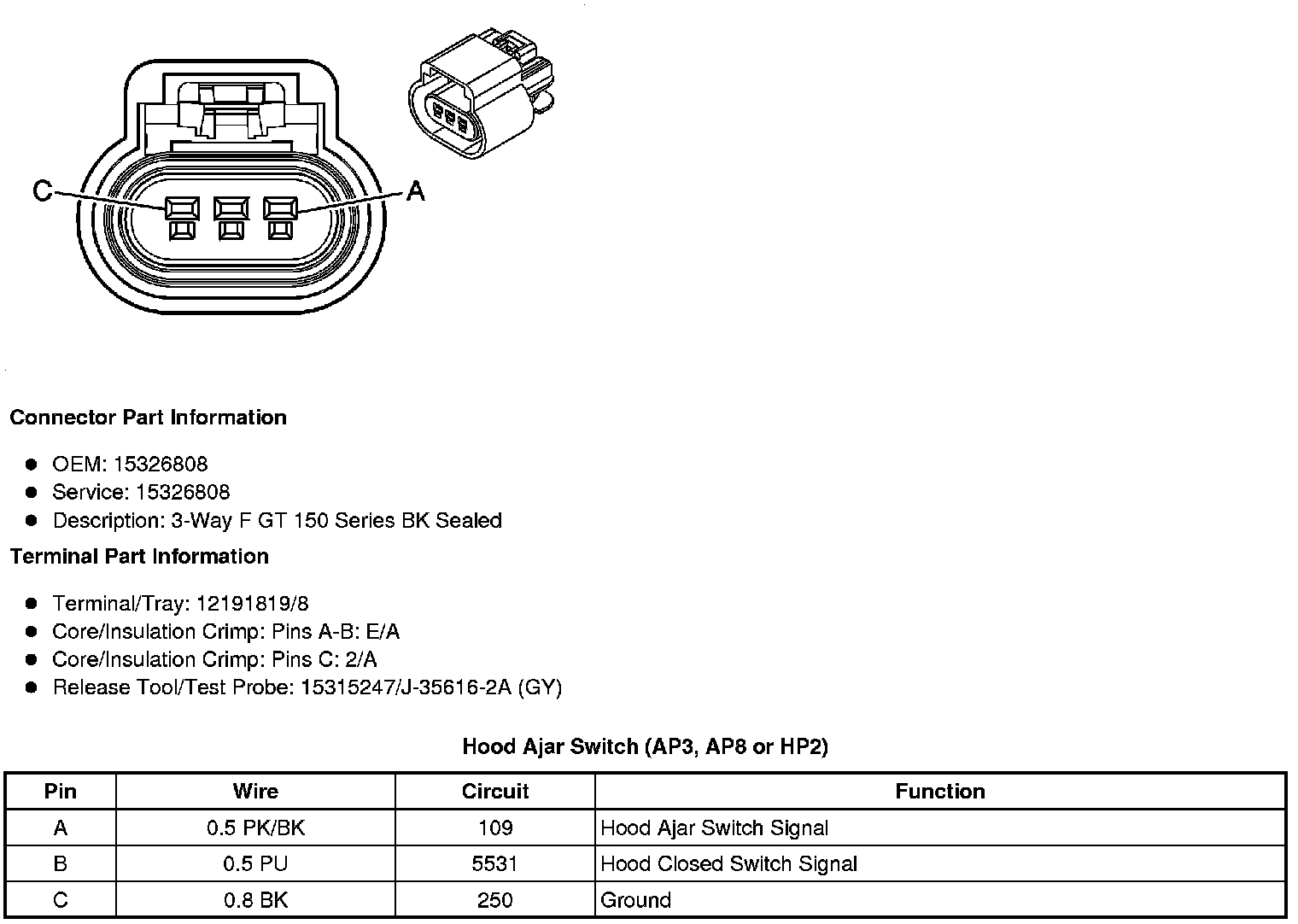 Hood Ajar Switch (AP3, AP8 or HP2)
