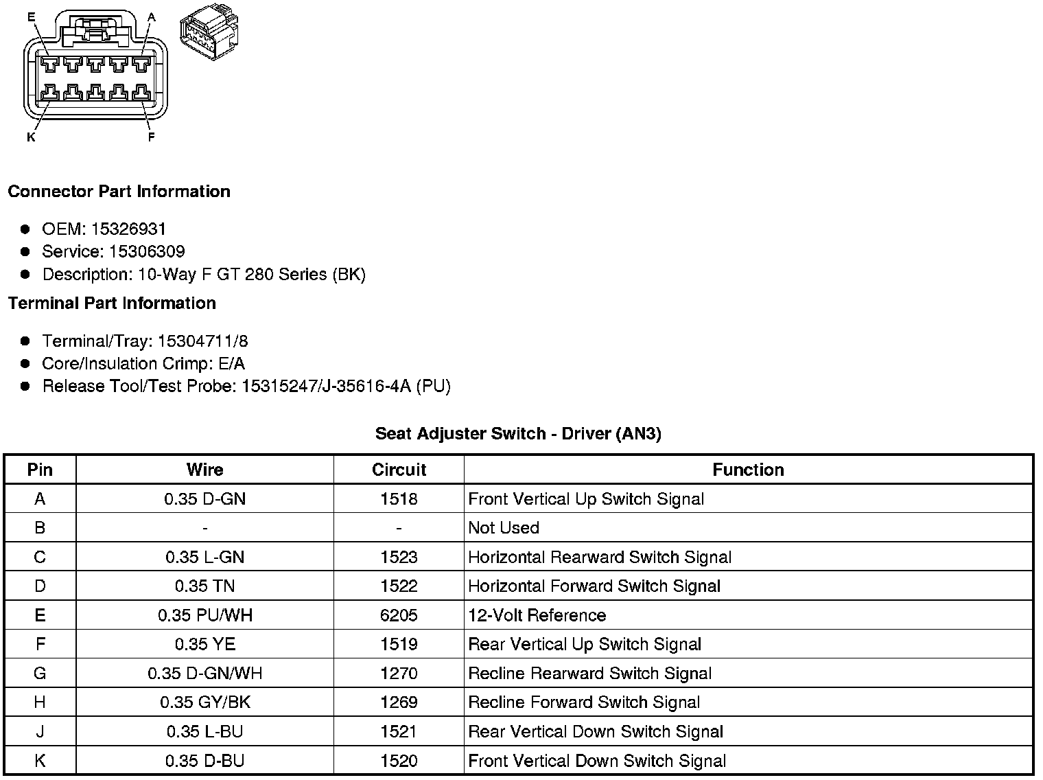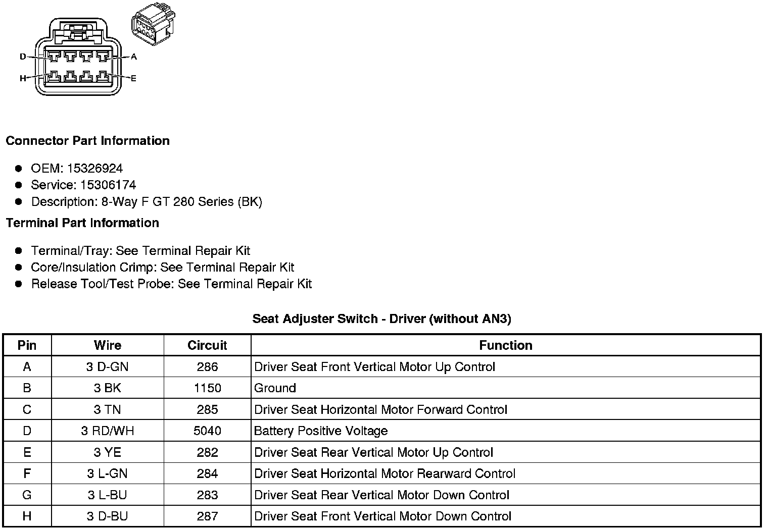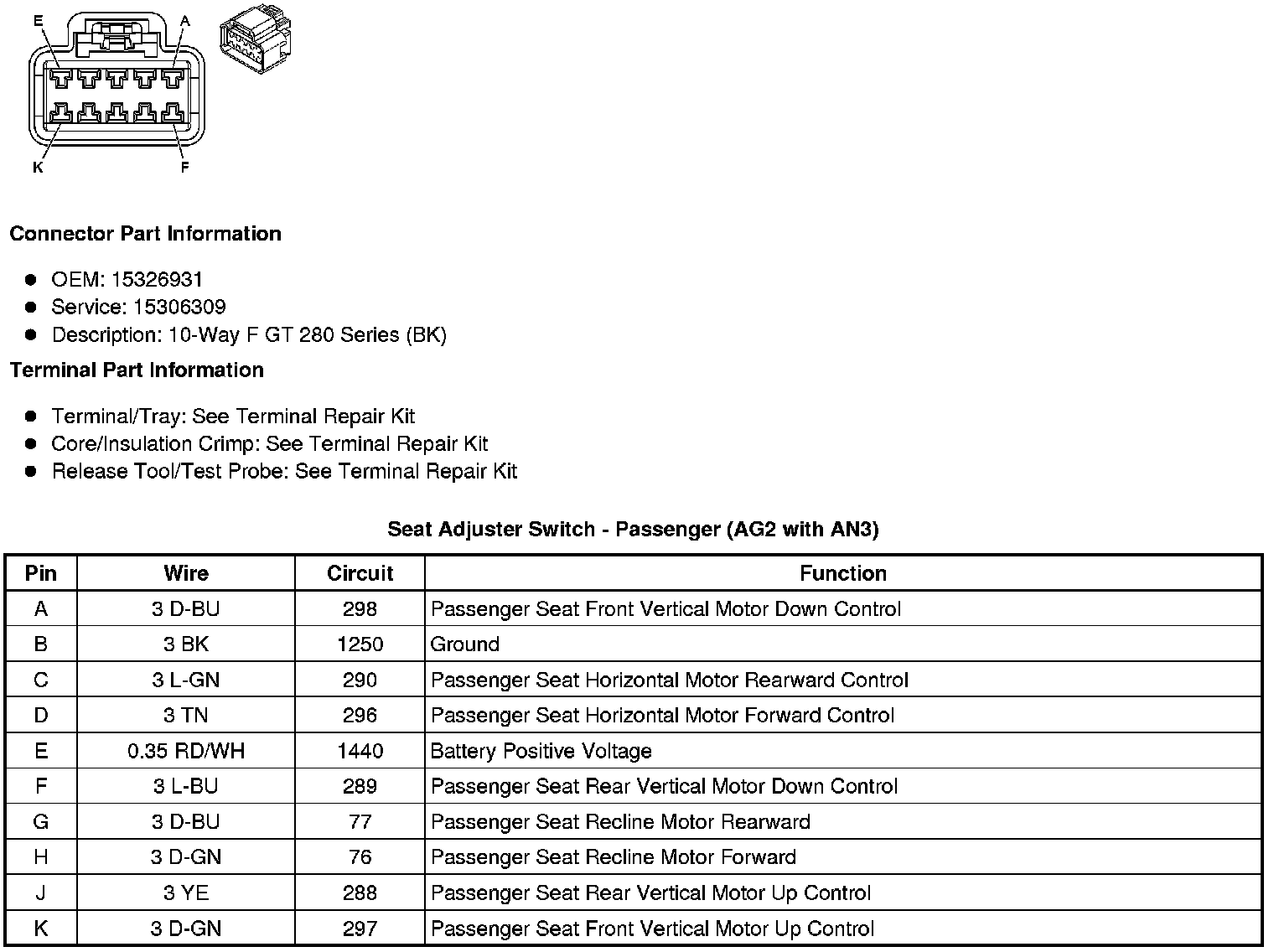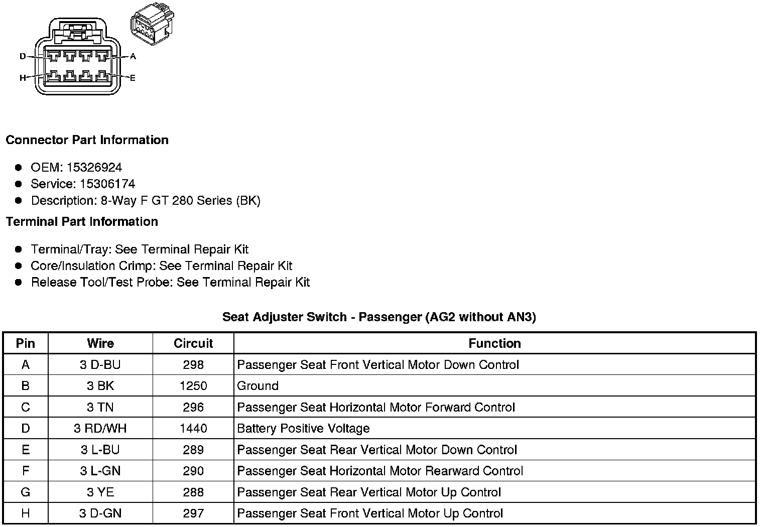 Seat Adjuster Switch - Passenger (AG2 with AN3)