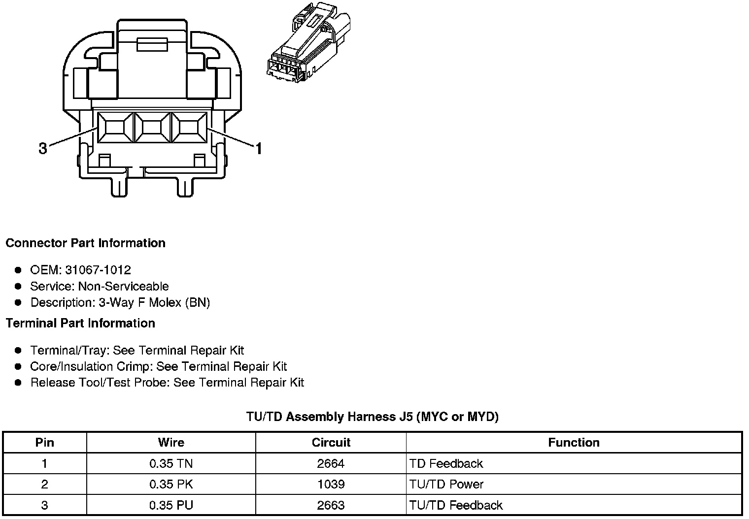 TU/TD Assembly Harness J5 (MYC or MYD)