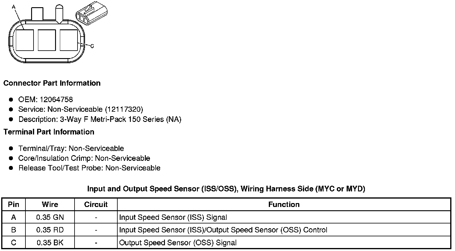 Input and Output Speed Sensor (ISS/OSS), Wiring Harness Side (MYC or MYD)