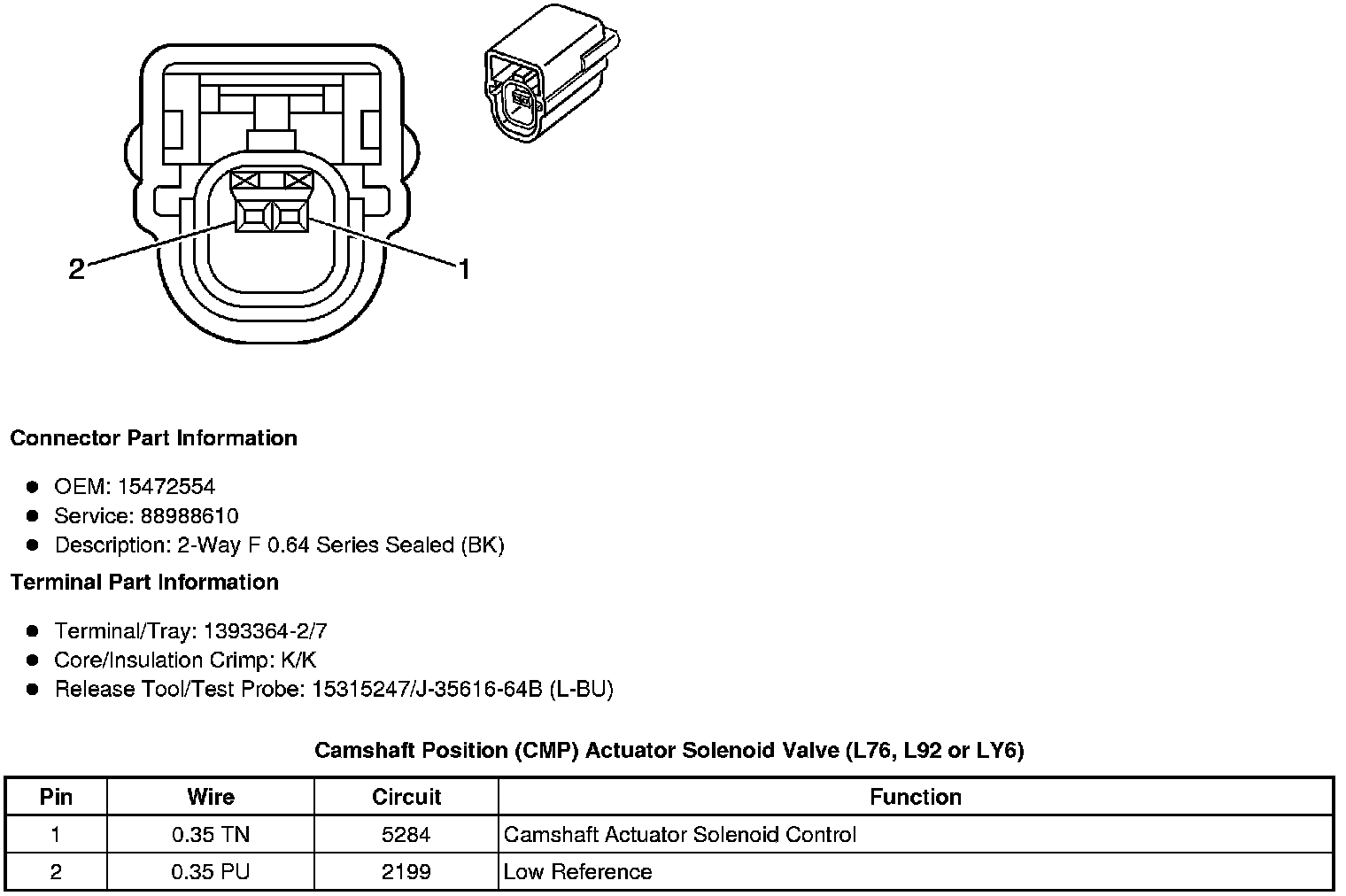 Camshaft Position (CMP) Actuator Solenoid Valve (L76, L92 or LY6)