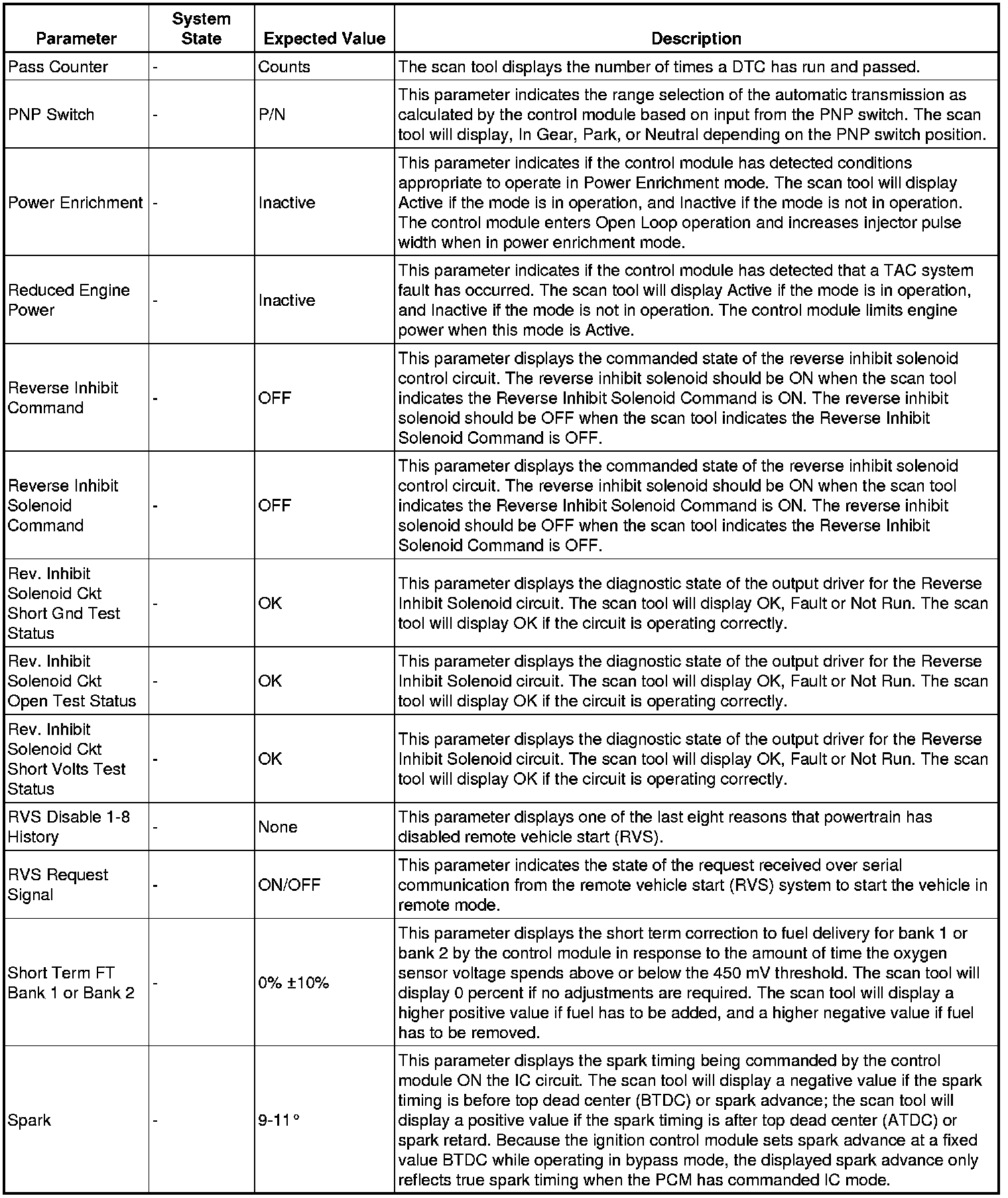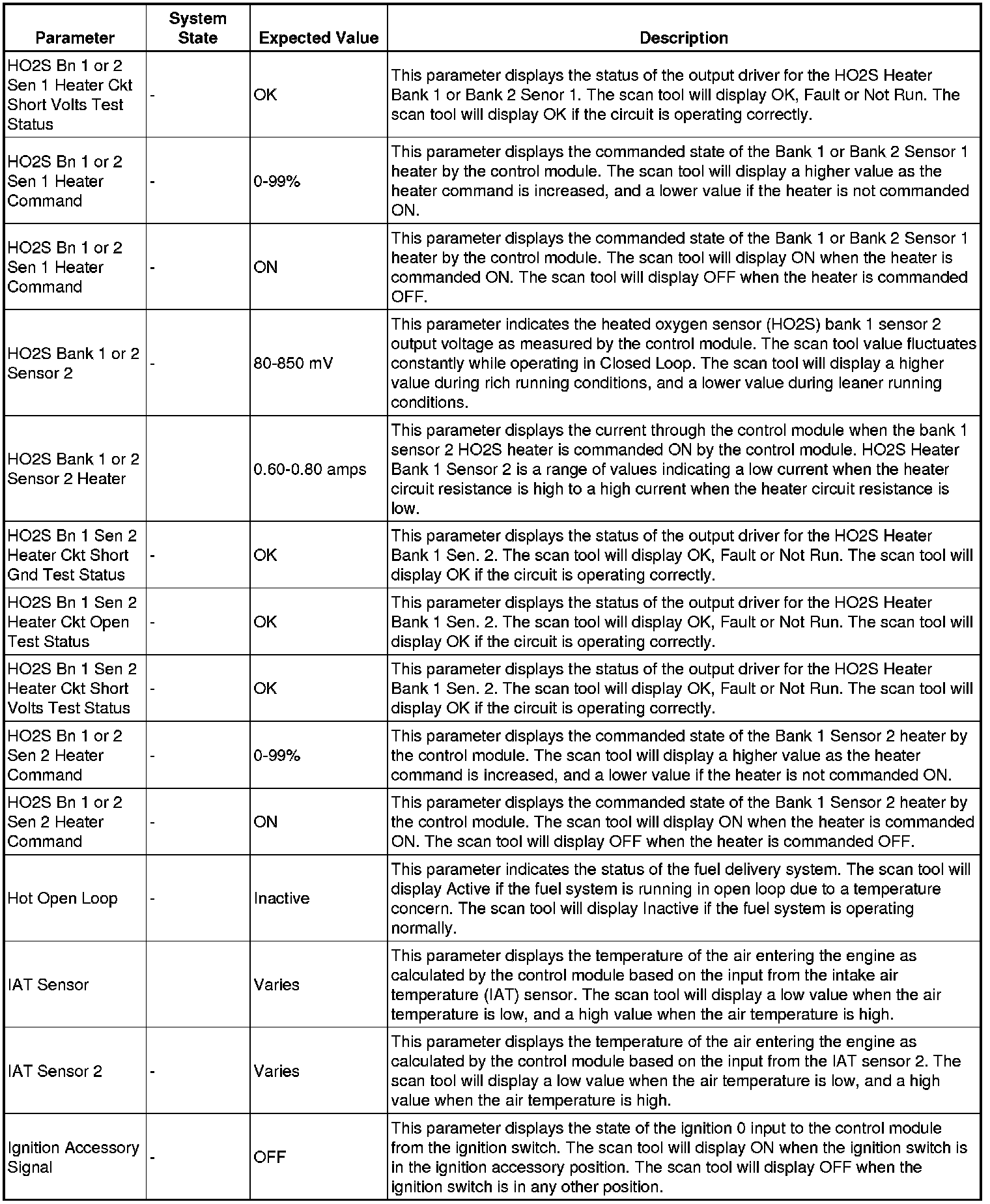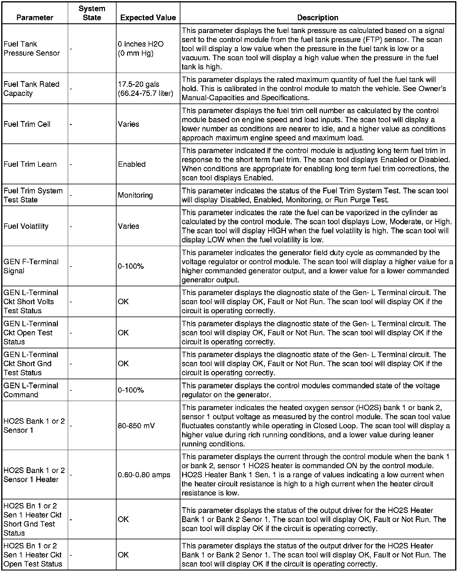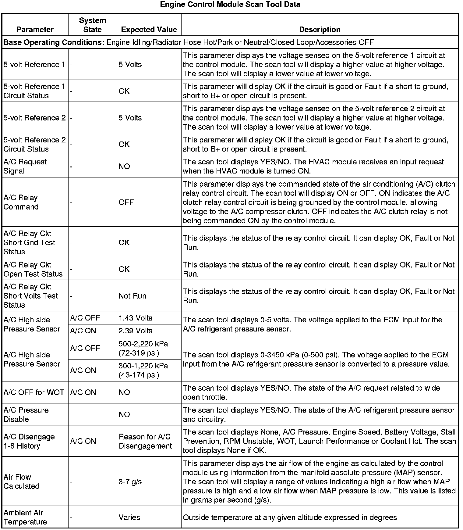 The Engine Control Module Scan Tool Data List contains all engine-related parameters that are available on the scan tool. The list is arranged in alphabetical order. A given parameter may appear in any one of the data lists, and in some cases may appear more than once, or in more than one data list in order to group certain related parameters together.