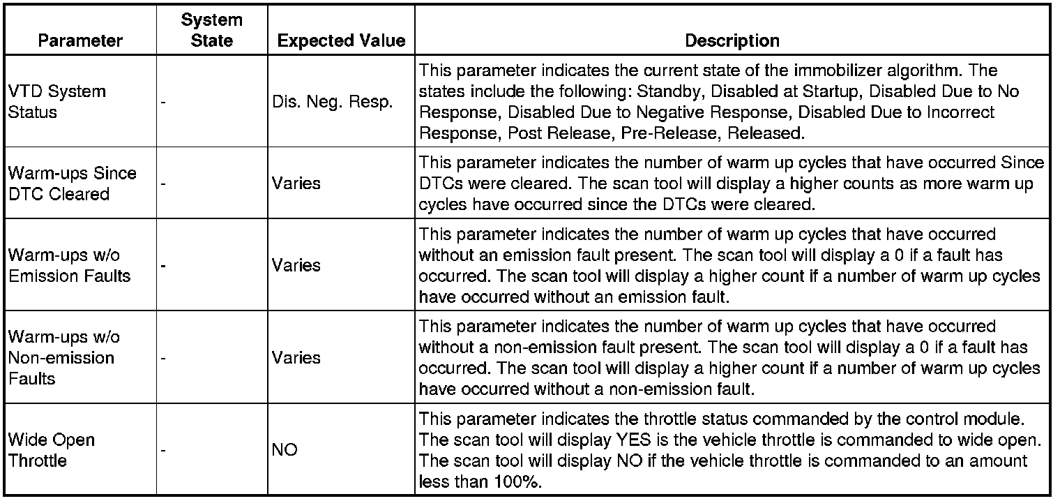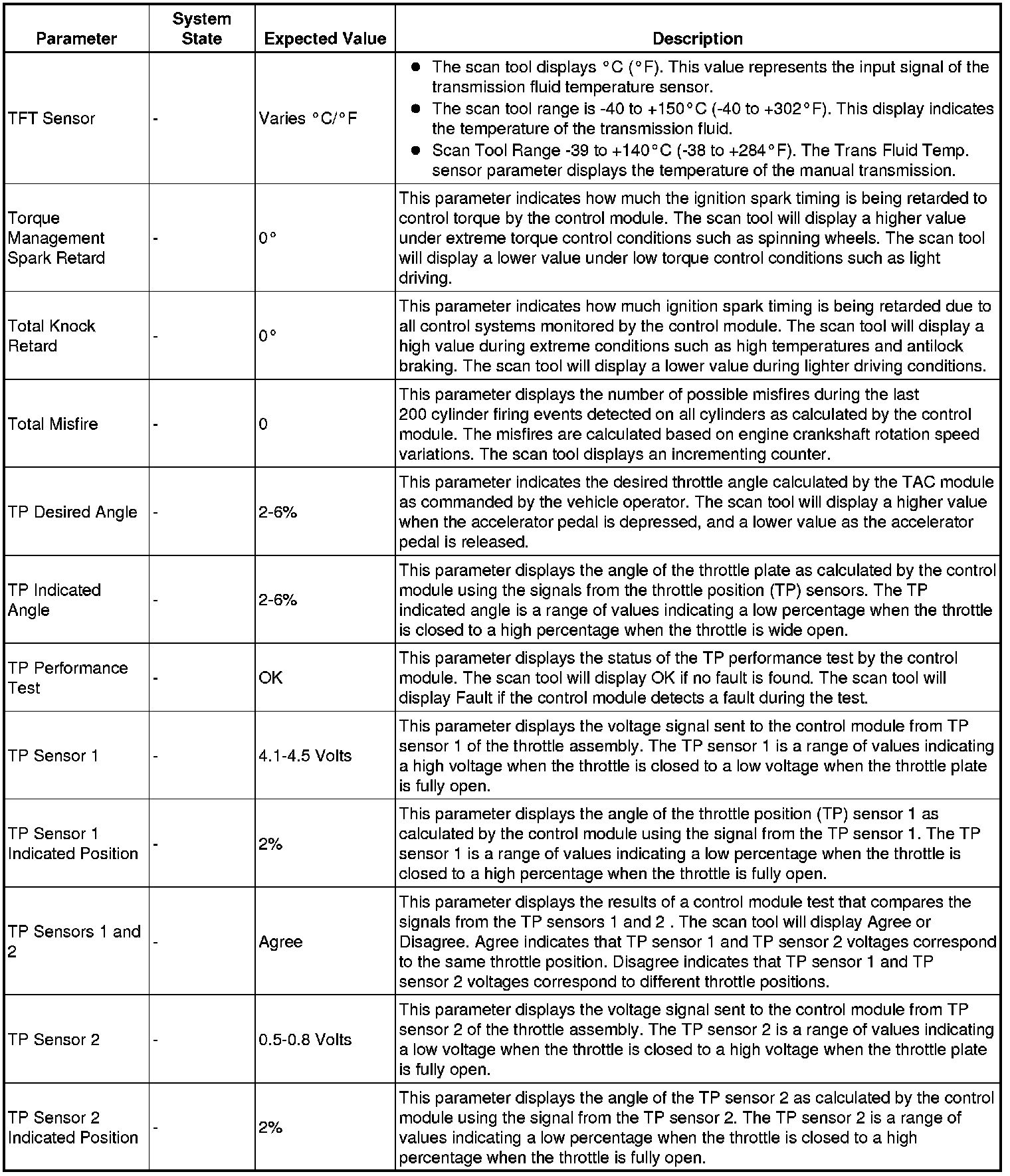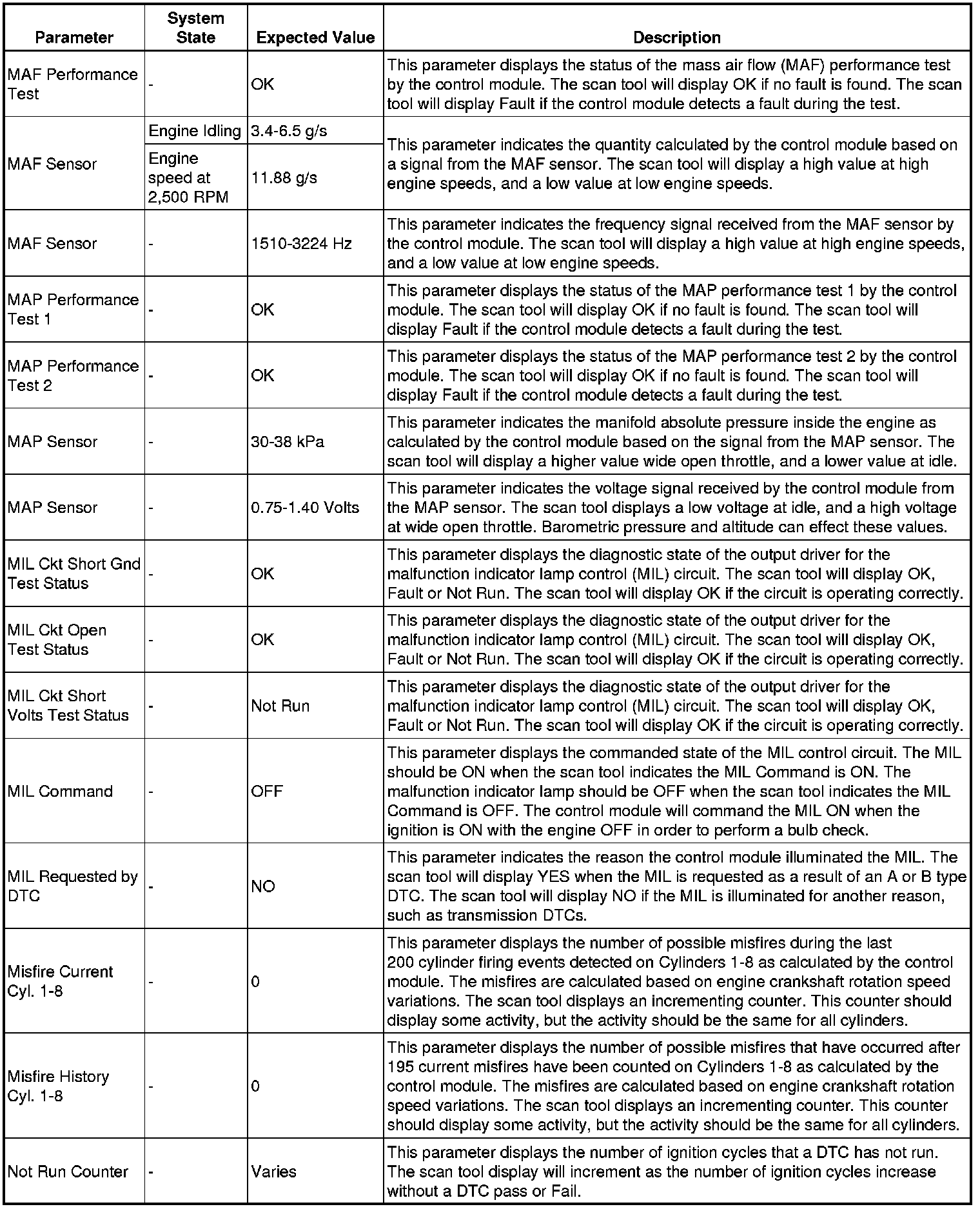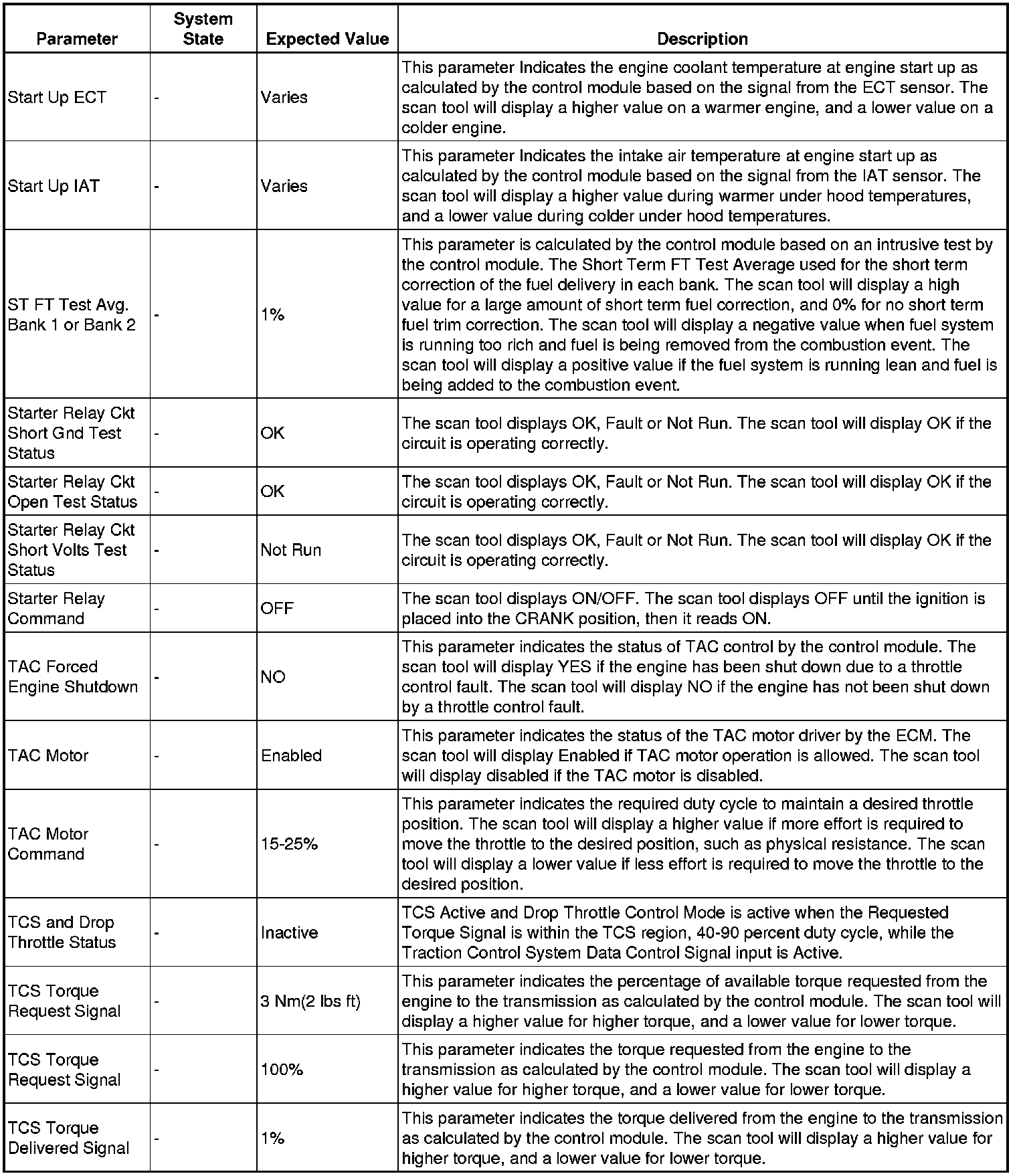 The Engine Control Module Scan Tool Data List contains all engine-related parameters that are available on the scan tool. The list is arranged in alphabetical order. A given parameter may appear in any one of the data lists, and in some cases may appear more than once, or in more than one data list in order to group certain related parameters together.