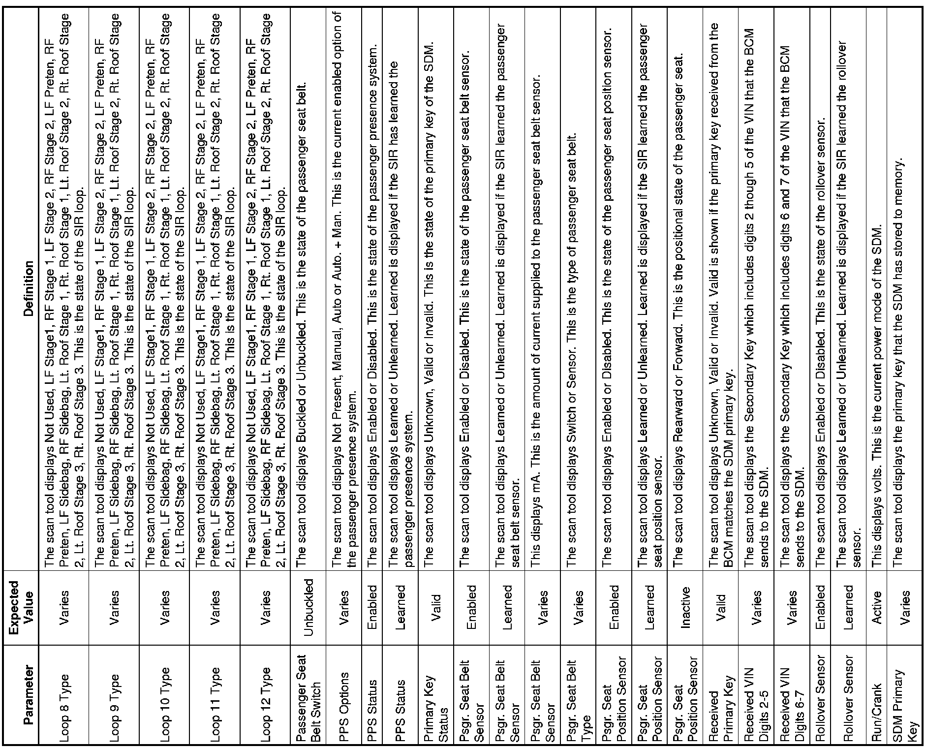 Inflatable Restraint Sensing and Diagnostic Module Scan Tool Information
