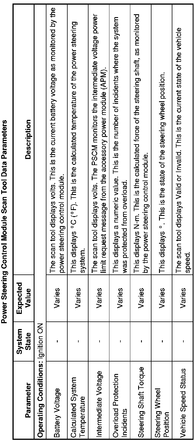 Power Steering Control Module Scan Tool Information