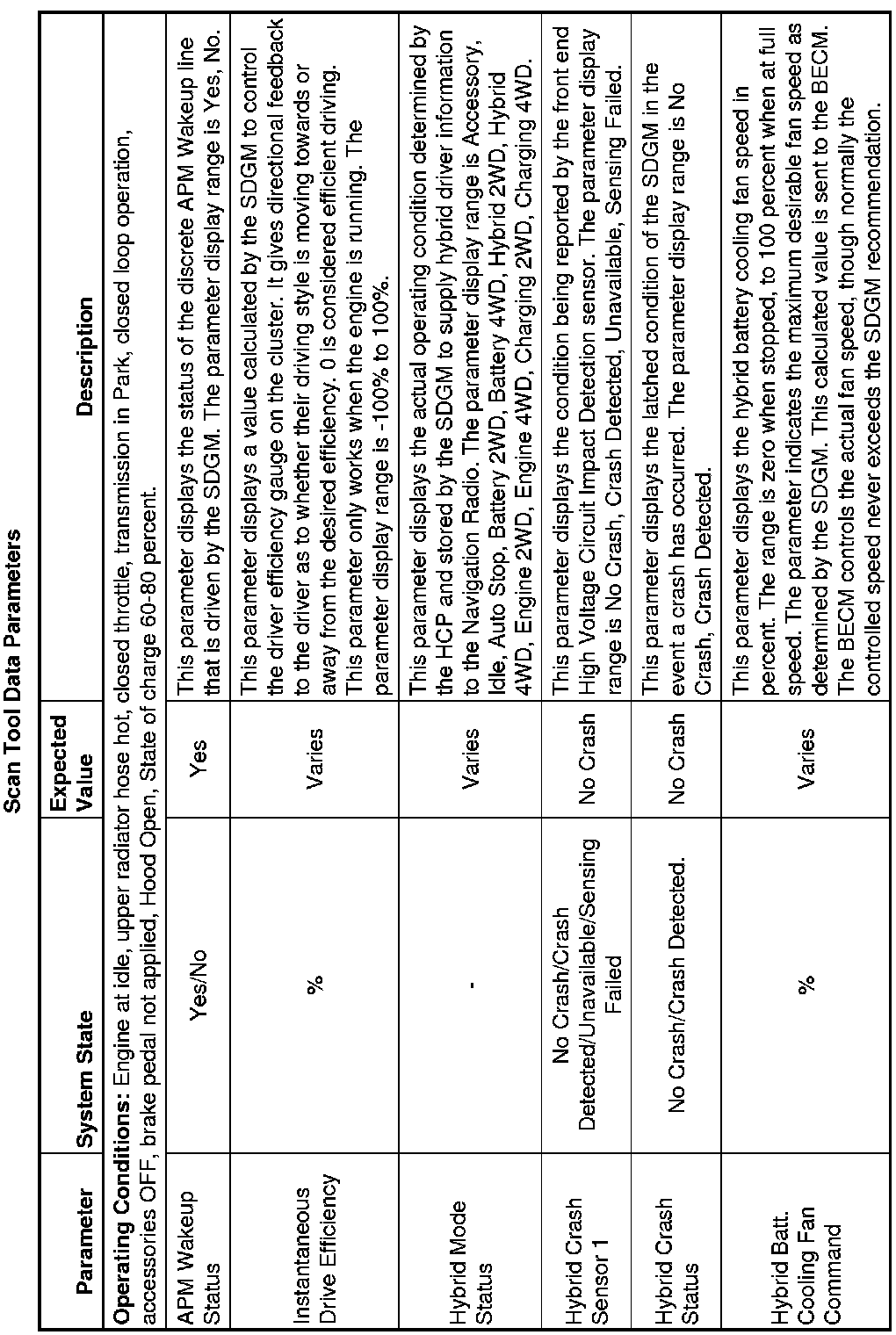 Use the scan tool data values under the following conditions: