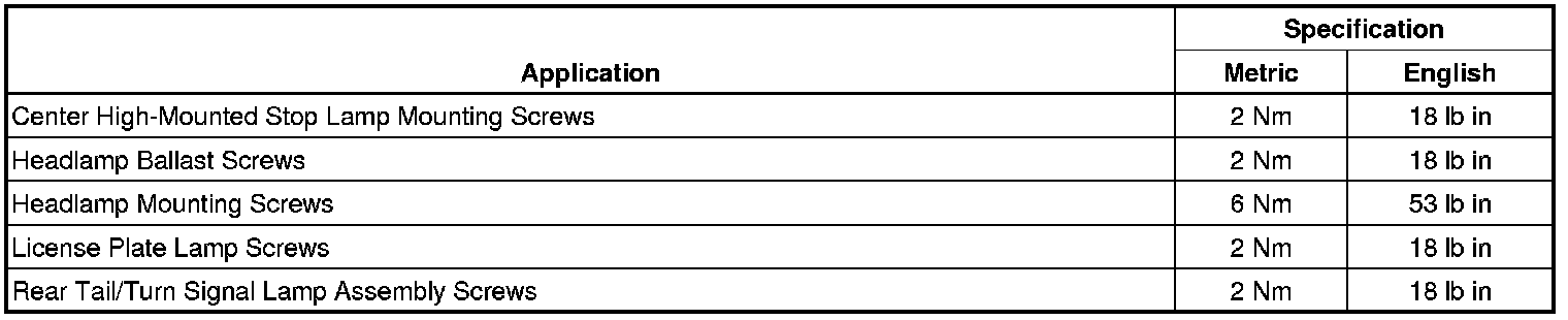 Fastener Tightening Specifications
