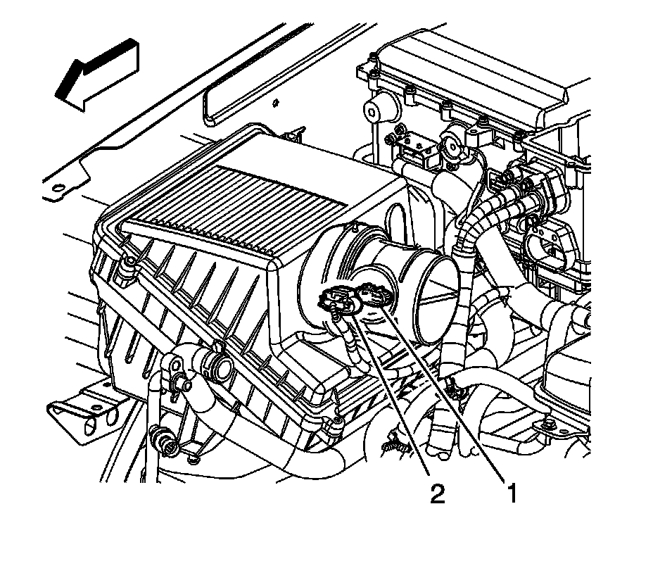 Note: The embossed arrow on the MAF/IAT sensor indicates the proper air flow direction. The arrow must point toward the engine.