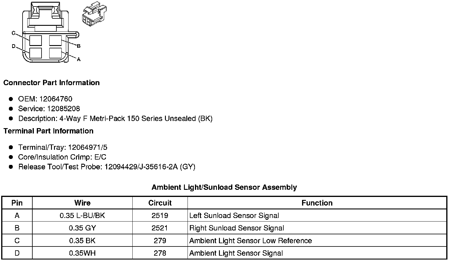 Ambient Light/Sunload Sensor Assembly