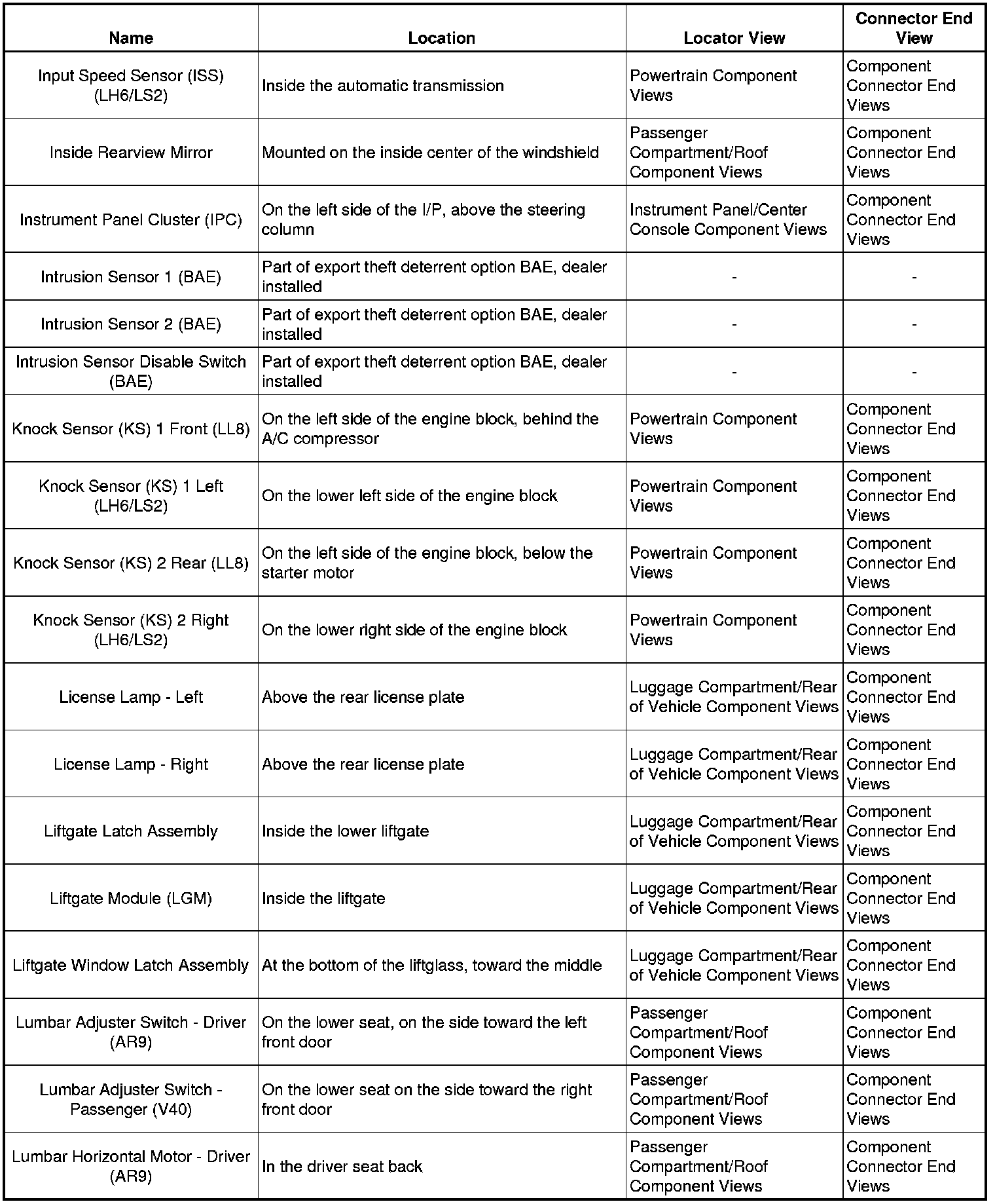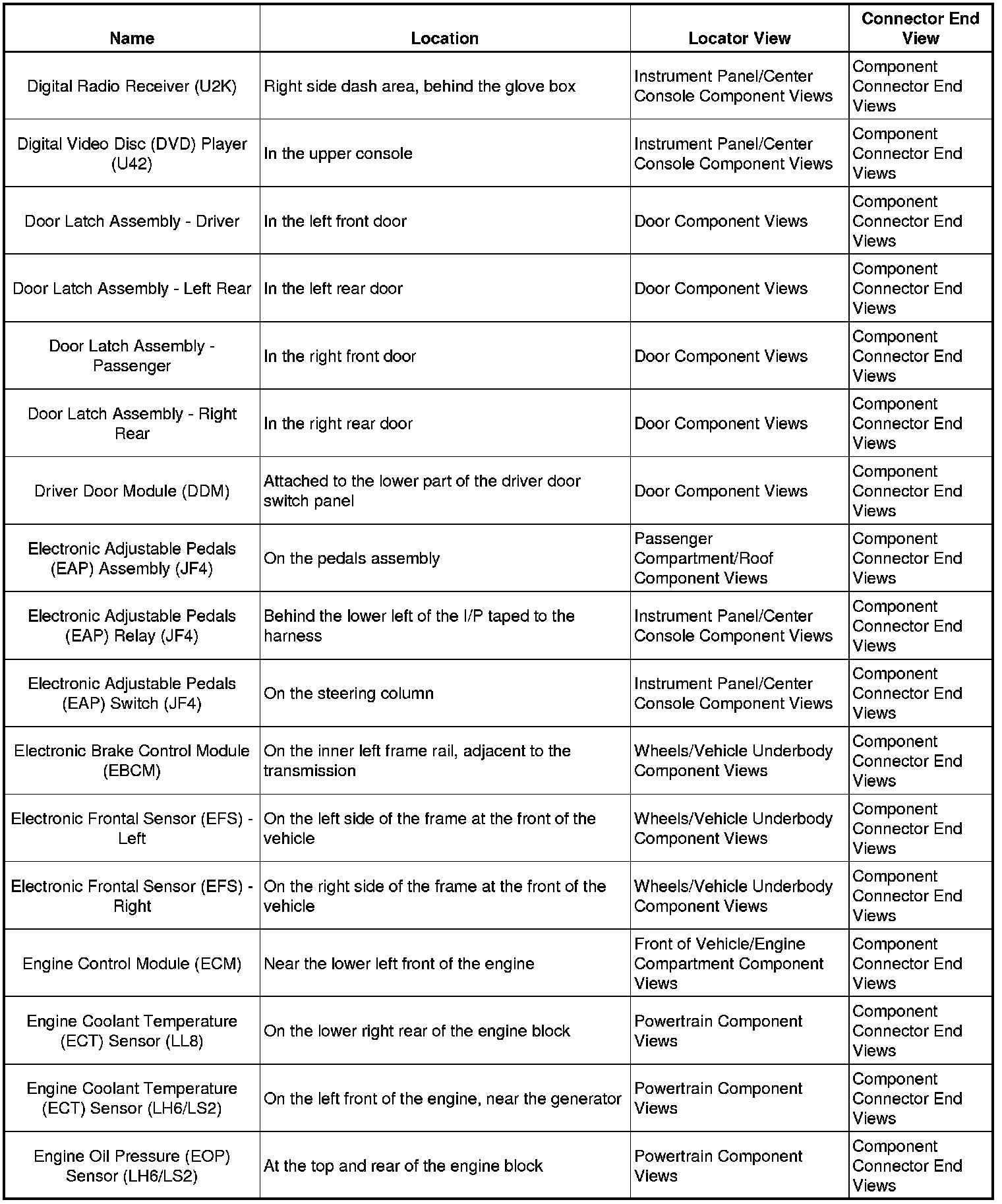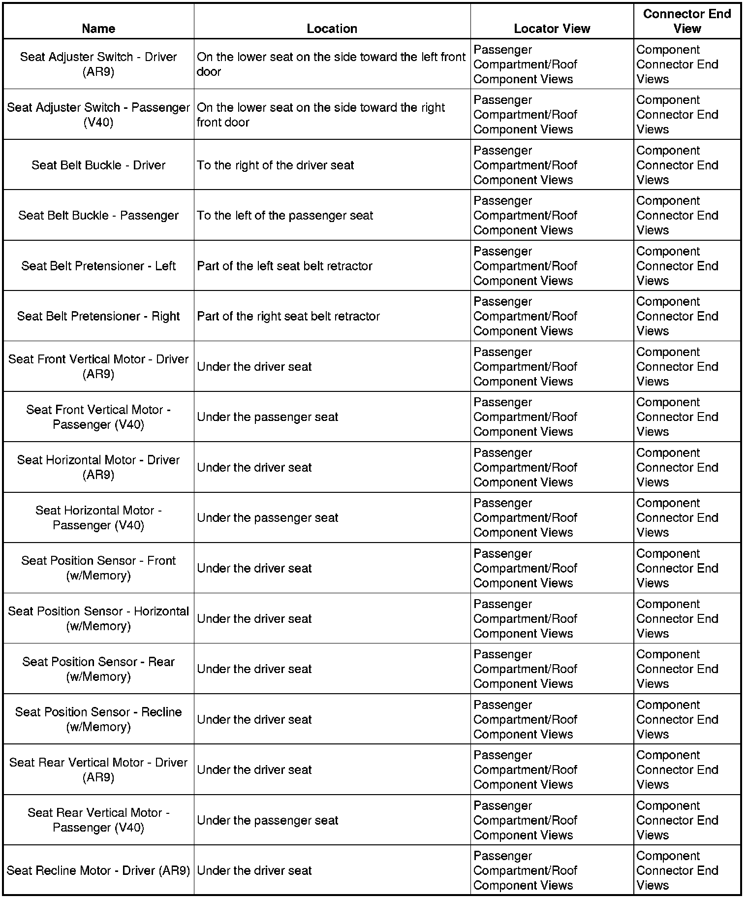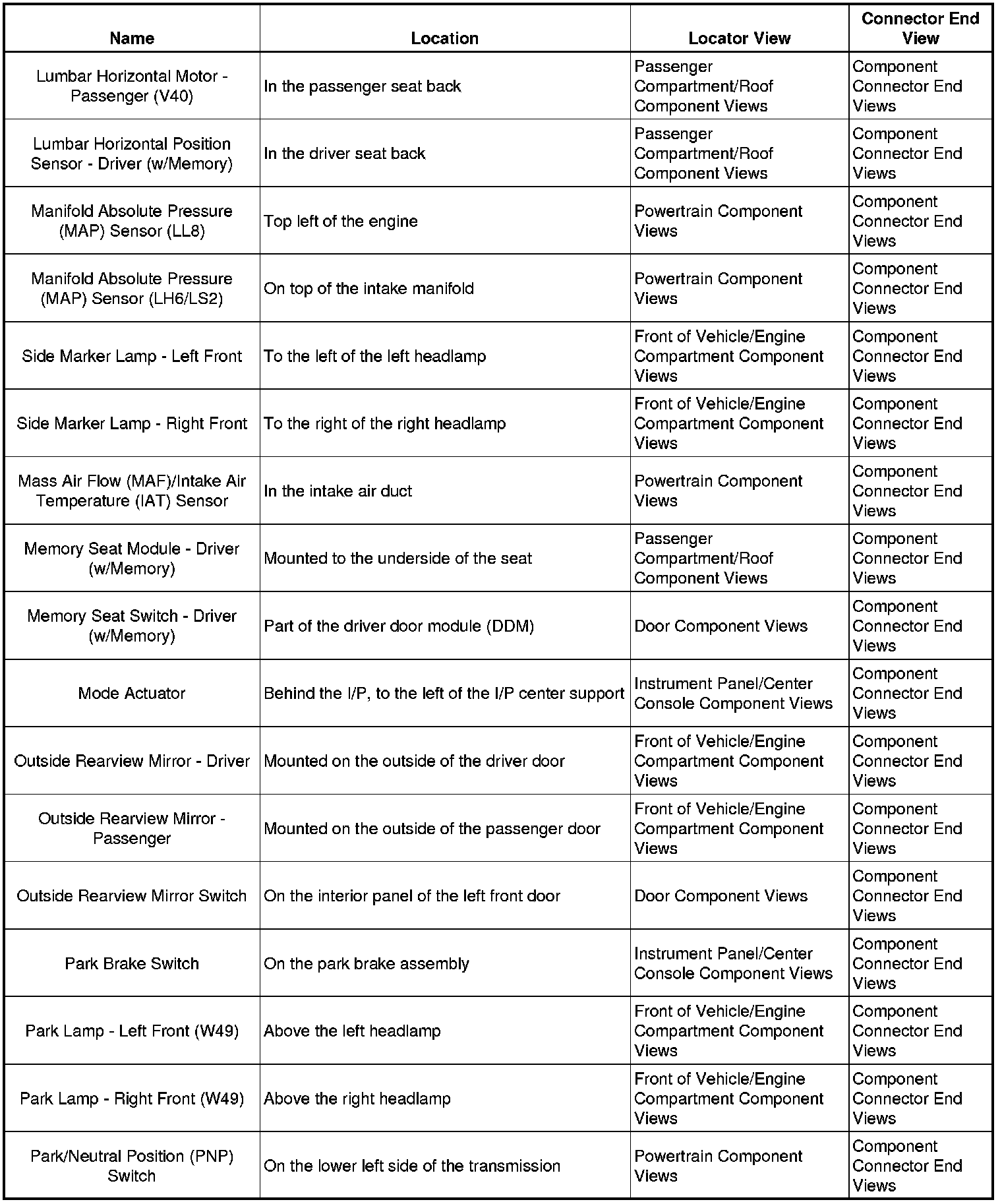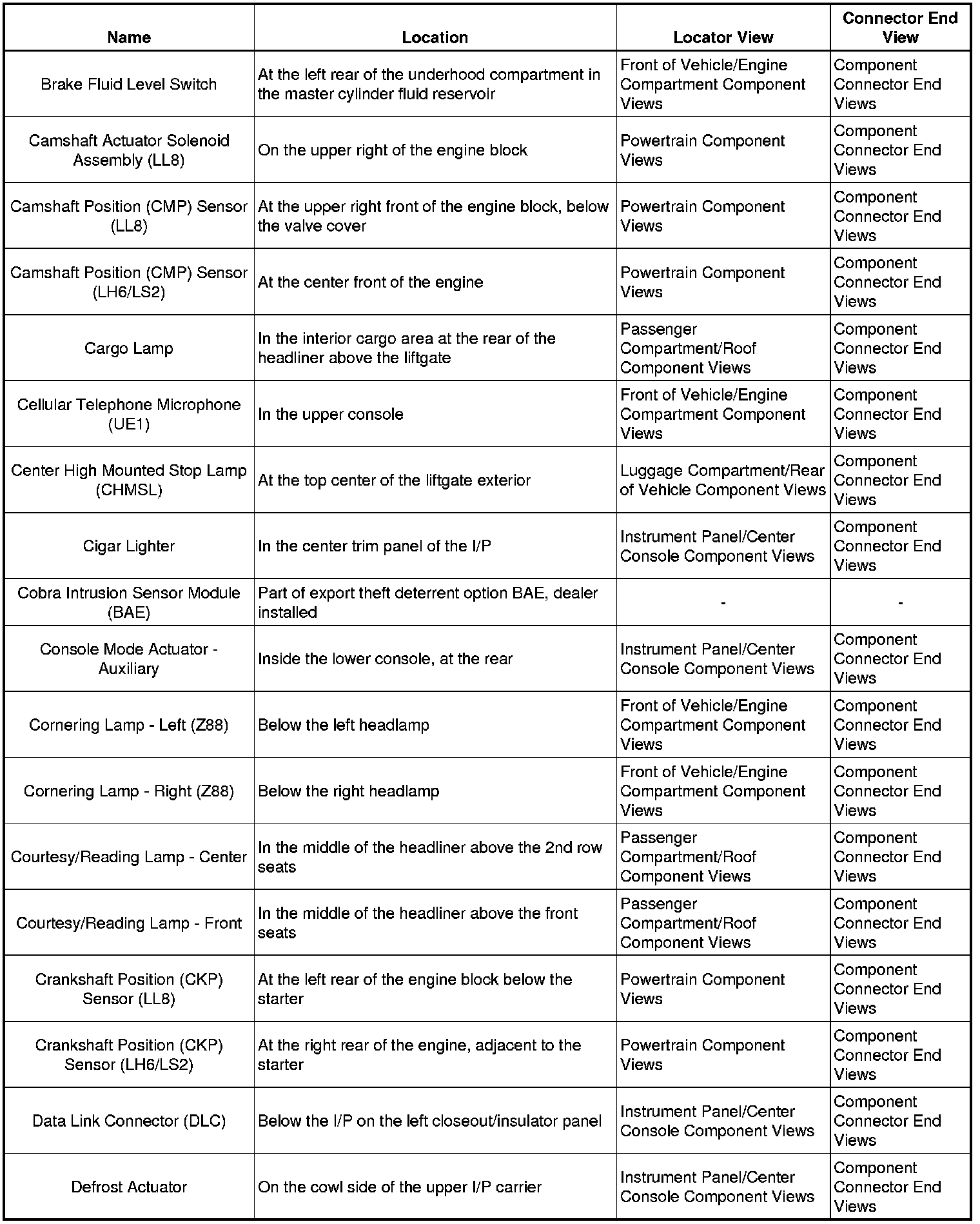 Master Electrical Component List