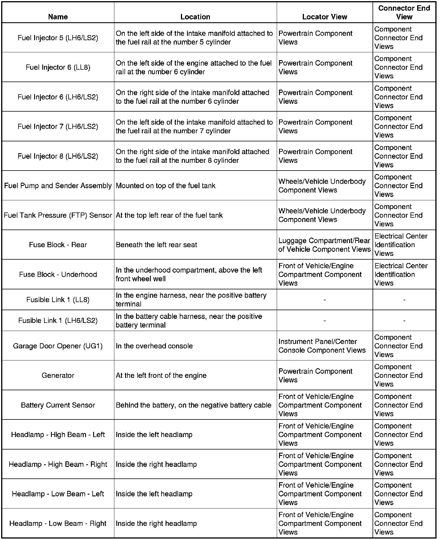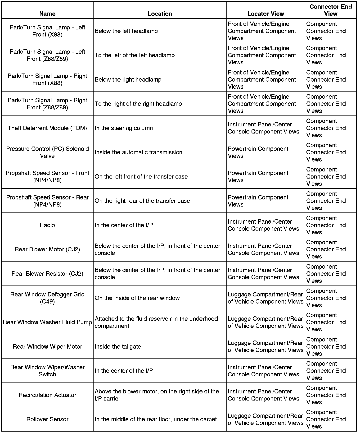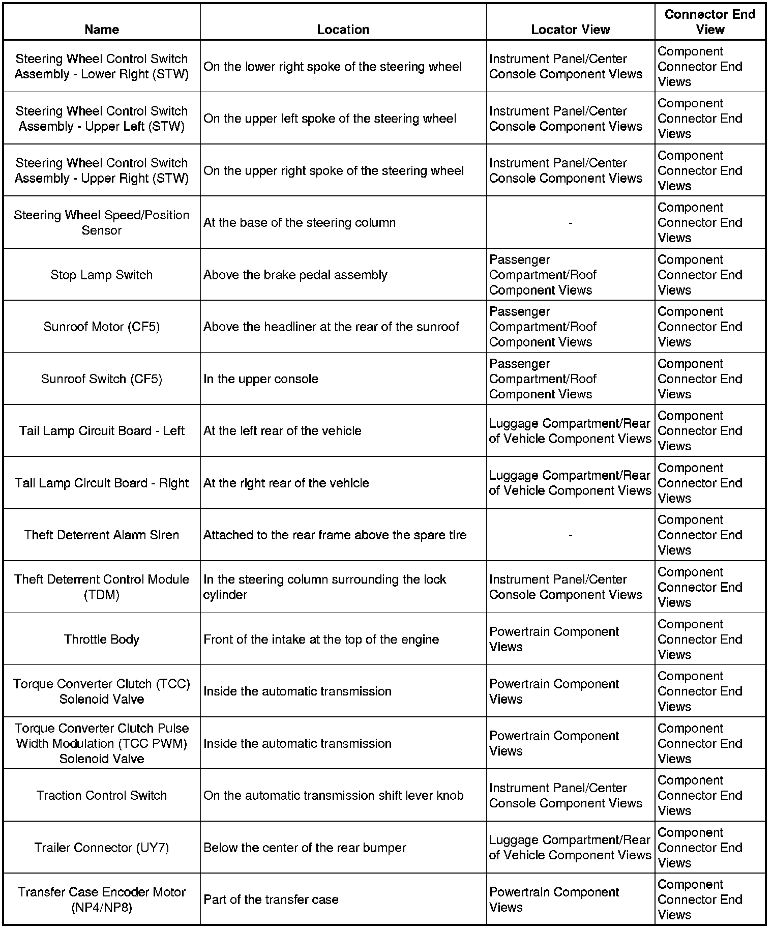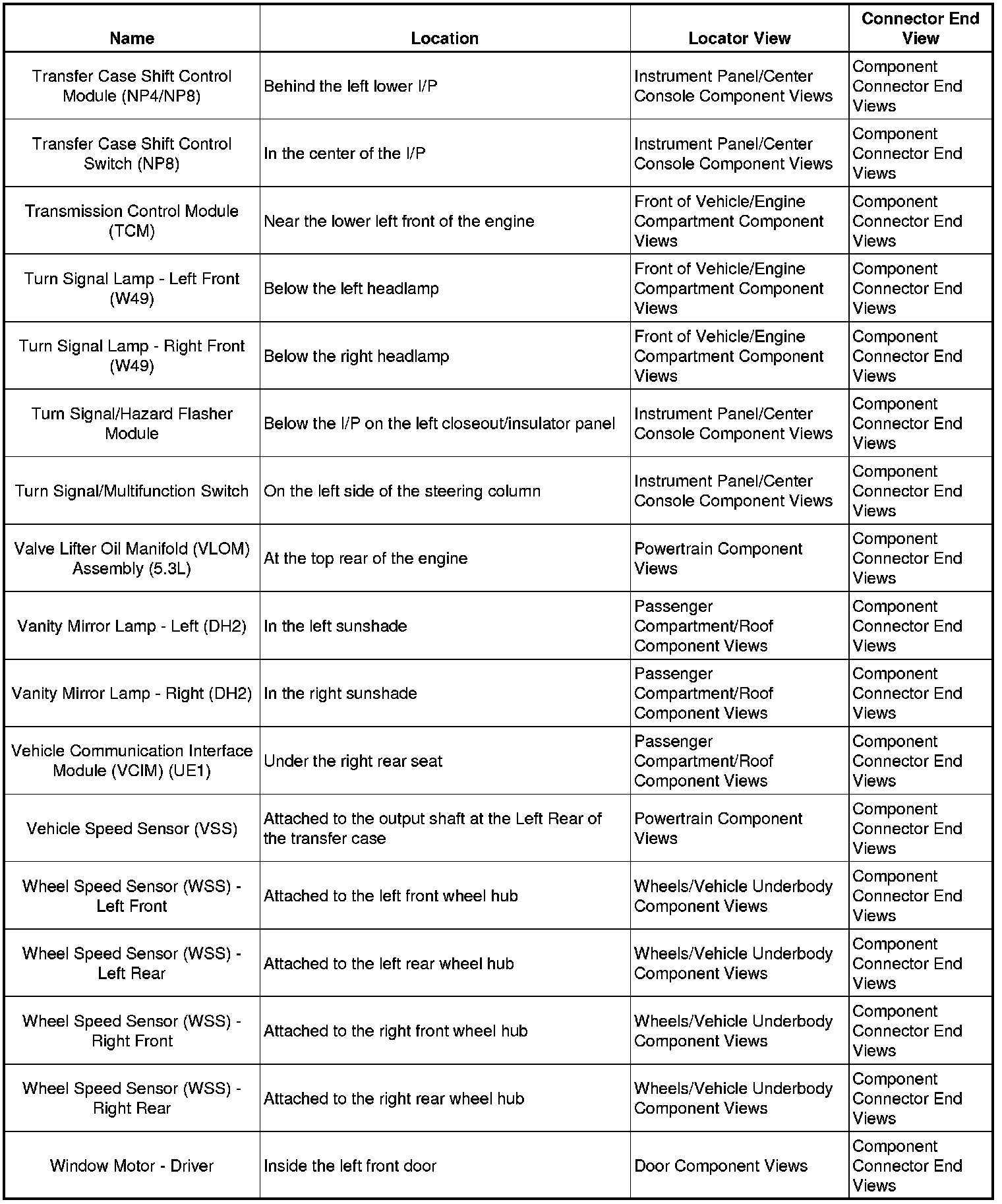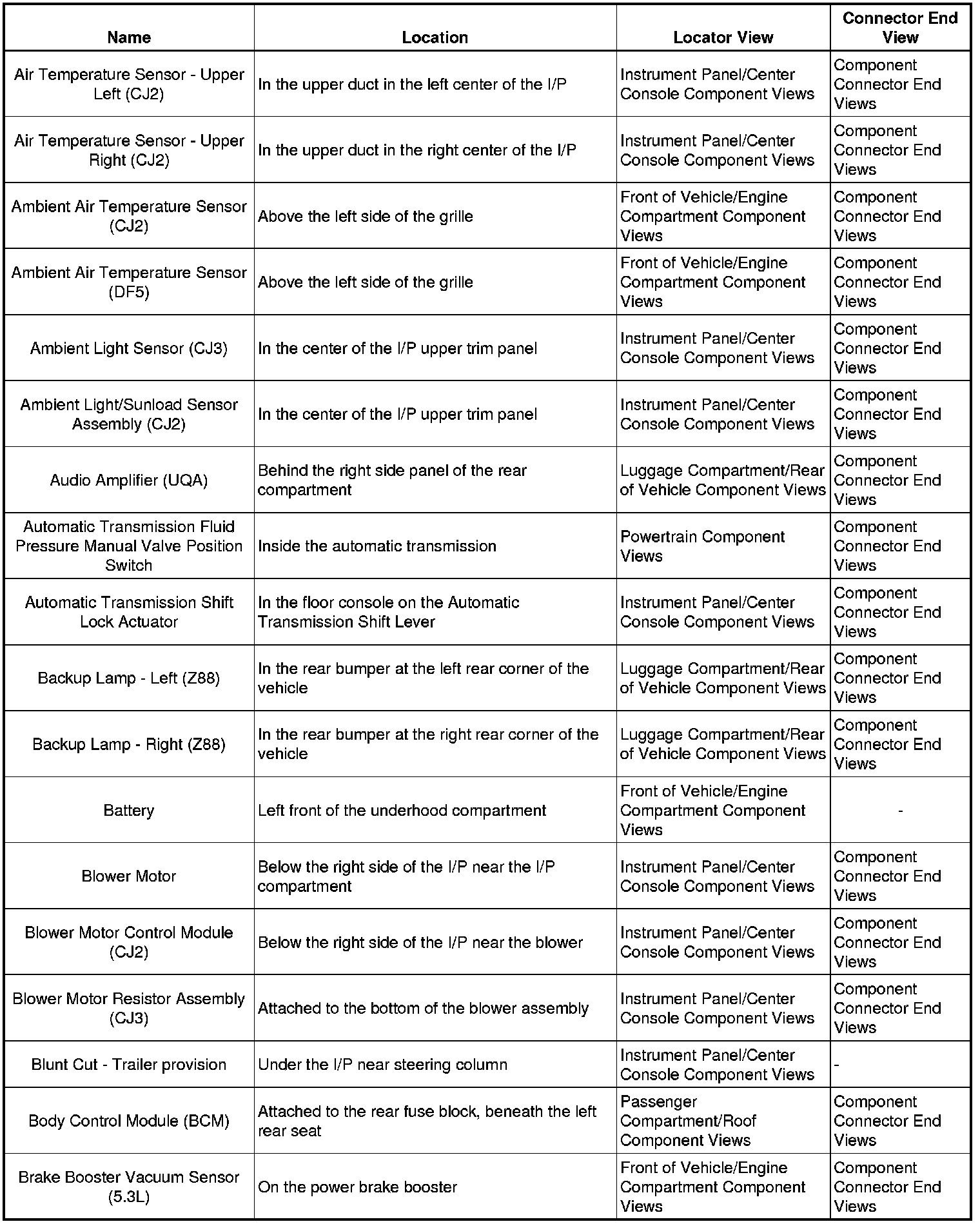 Master Electrical Component List