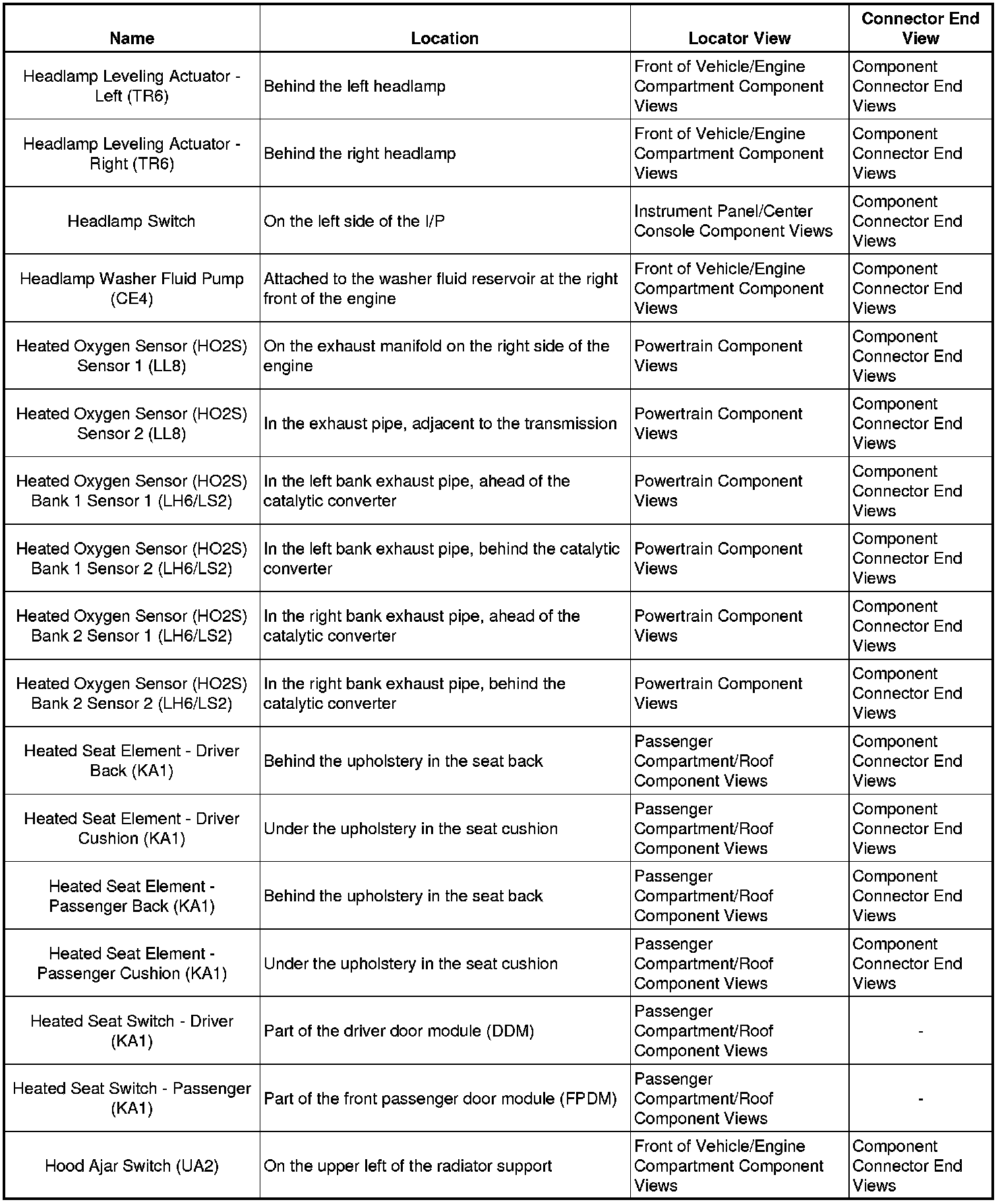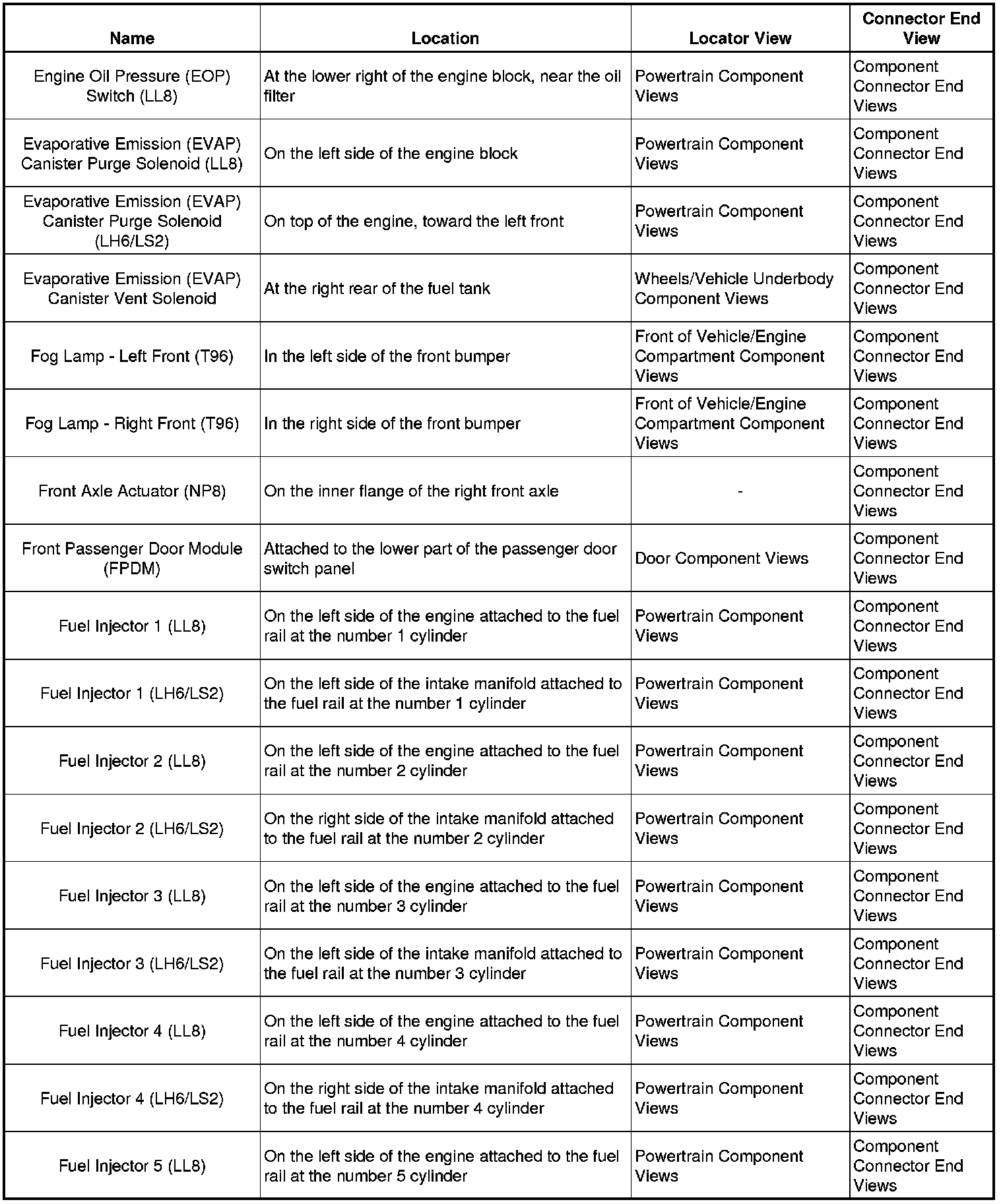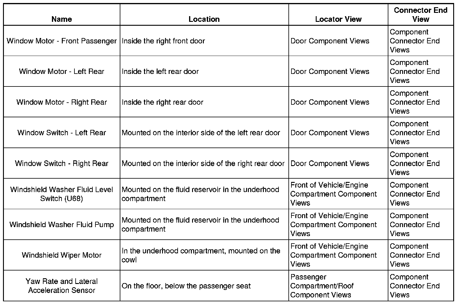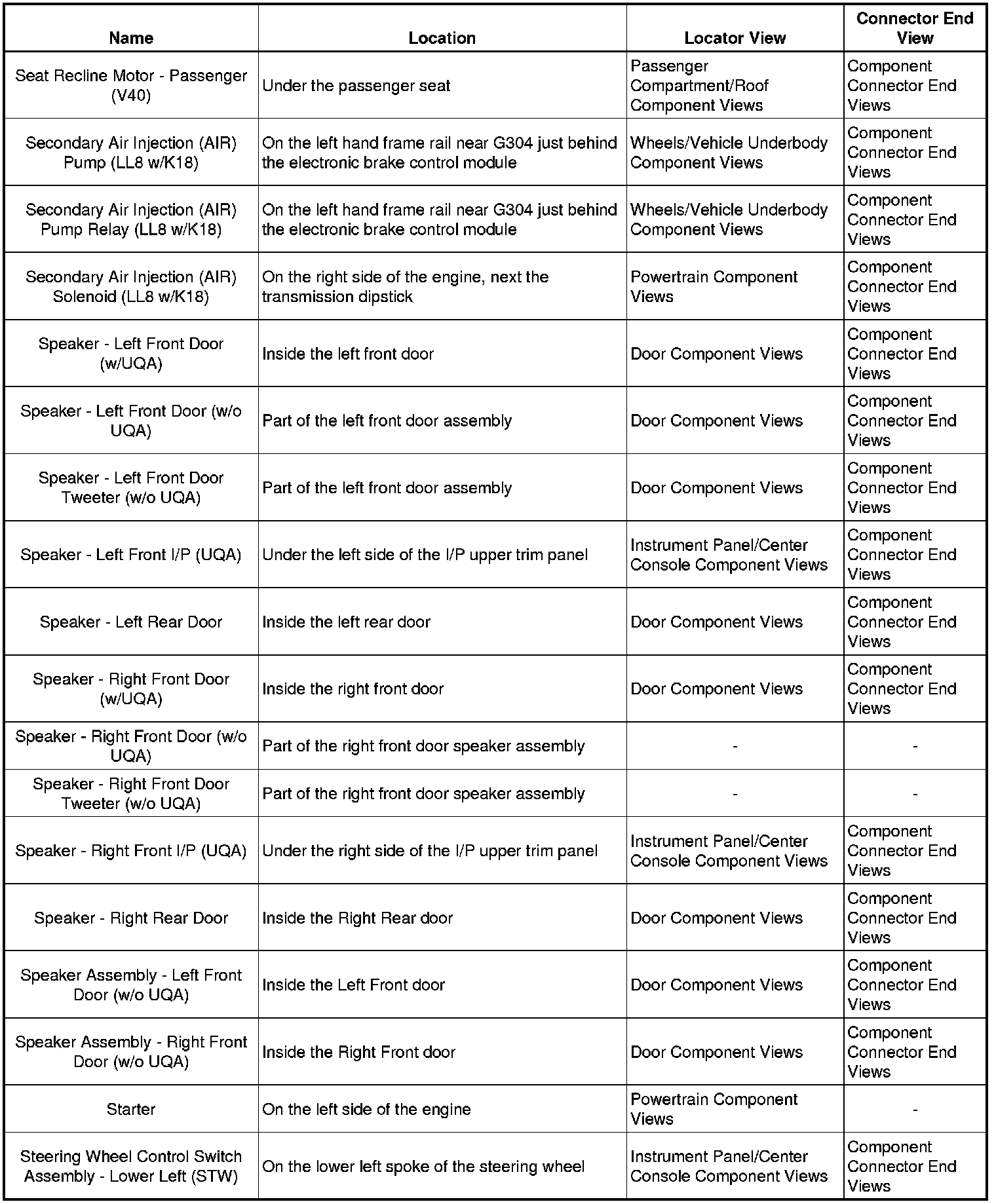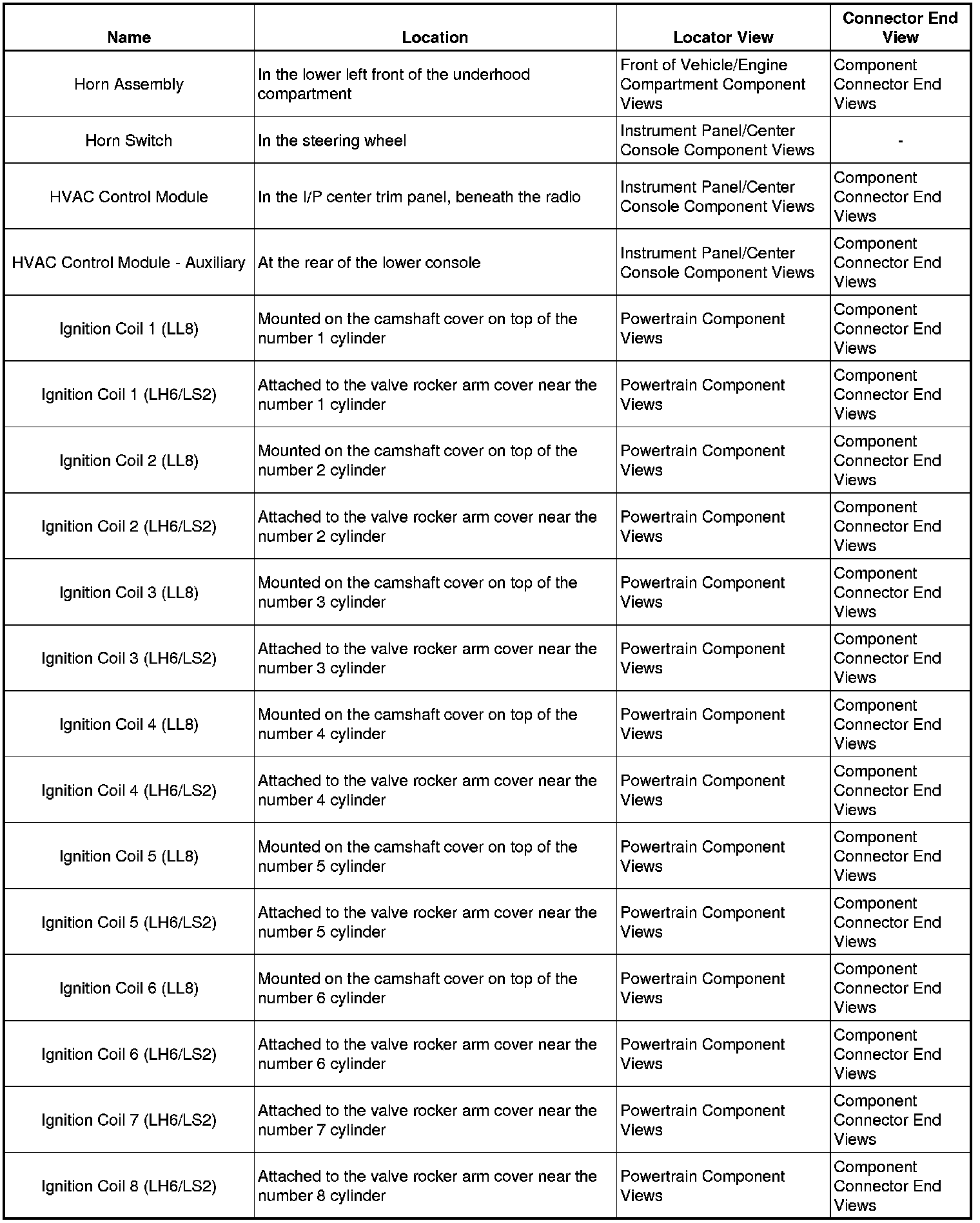 Master Electrical Component List