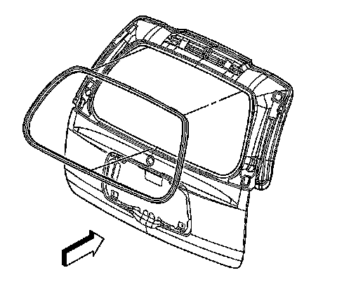 1. Install the liftgate window weatherstrip, starting at the top center of the liftgate window opening position the liftgate window weatherstrip to the pinch-weld flange and working down the right and left sides towards the bottom center, being careful not to stretch the liftgate window weatherstrip while installing it.