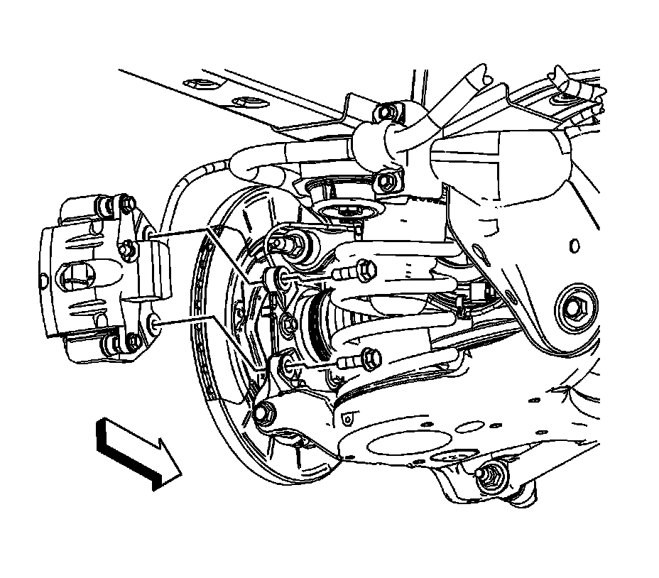 8. Secure the rear brake caliper and bracket assemblies to the vehicle underbody.