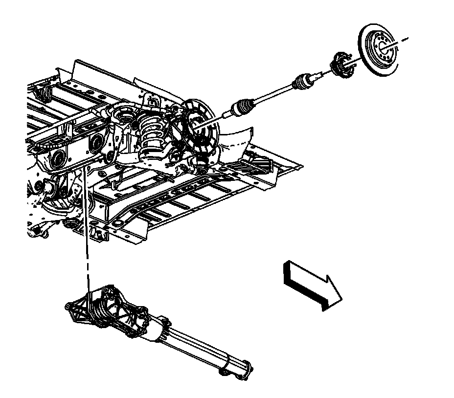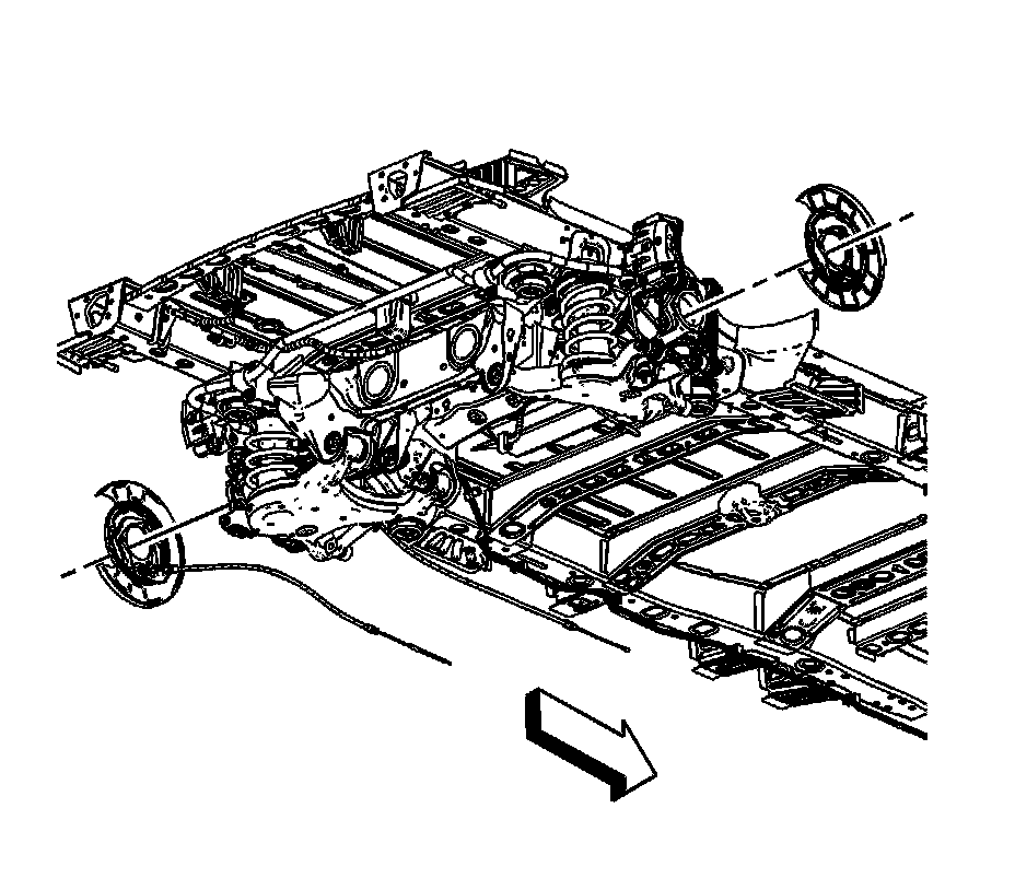 9. Remove the rear wheel bearings, axles, and differential assembly. Refer to Differential Replacement (Differential Replacement).