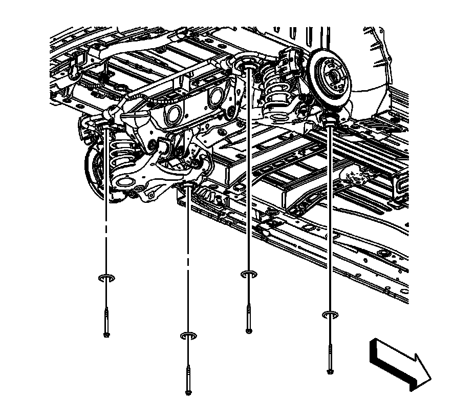Note:If the suspension crossmember mount bolt does not screw in smoothly, run a tap through the frame crossmember nut in the body in order to remove foreign material. Ensure the tap does not punch through the underbody.