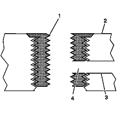 4. Tap the drilled hole until the threads at the top of the tap (2) are down to the surface of the base material.