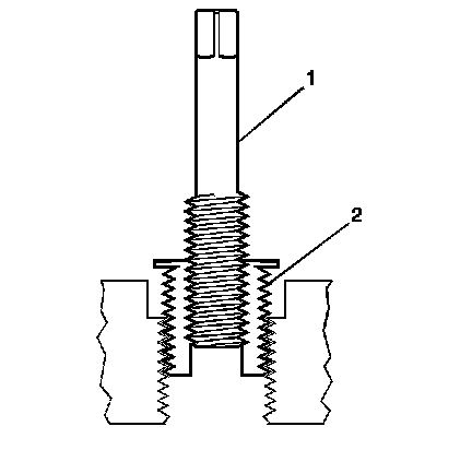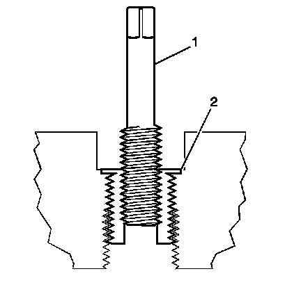 10. Apply threadlock sealant GM P/N 12345493, (Canadian P/N 10953488), J 42385-109, LOCTITE 277(R) or equivalent (1) to the insert OD threads (2).