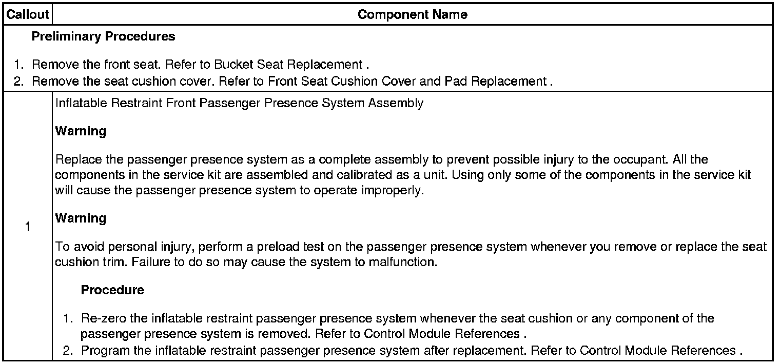 Inflatable Restraint Passenger Presence System Replacement - Front