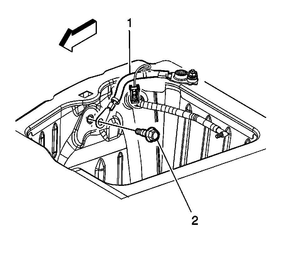 3. Remove the negative battery cable ground bolt (2). (battery shown removed for clarity).