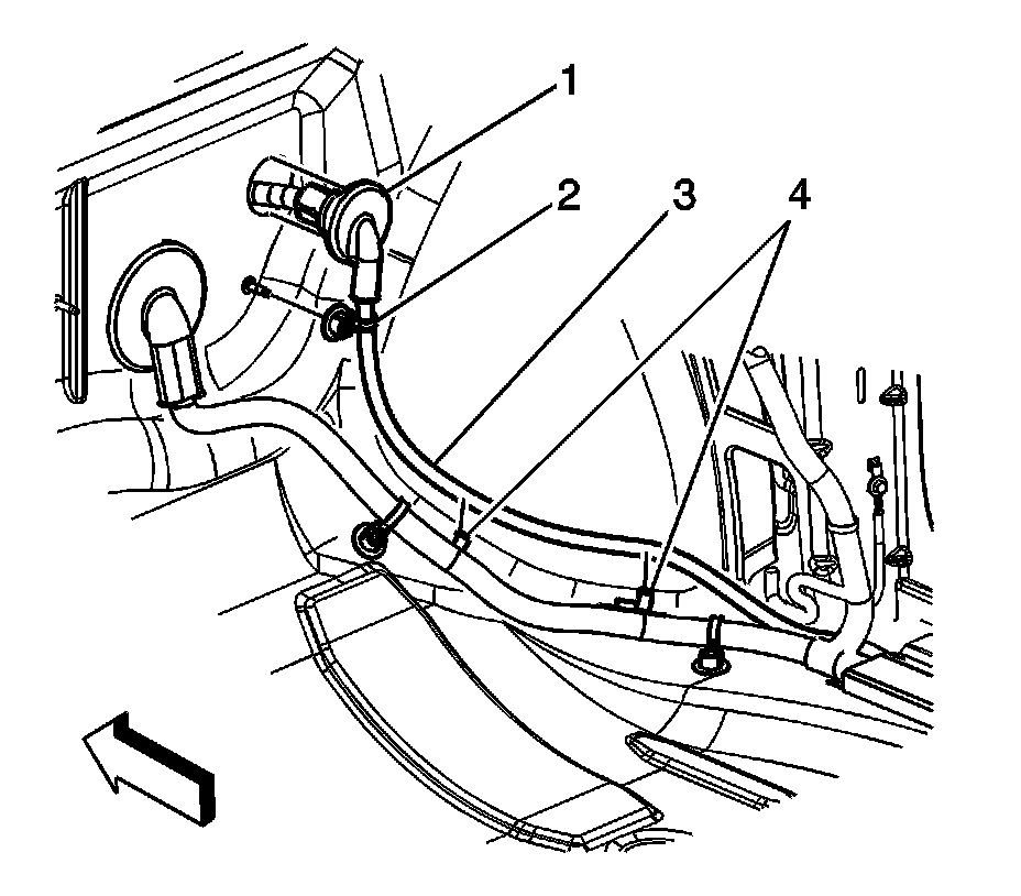 17. Disconnect the body wiring harness electrical connector (4) from the negative battery cable electrical connector (1).