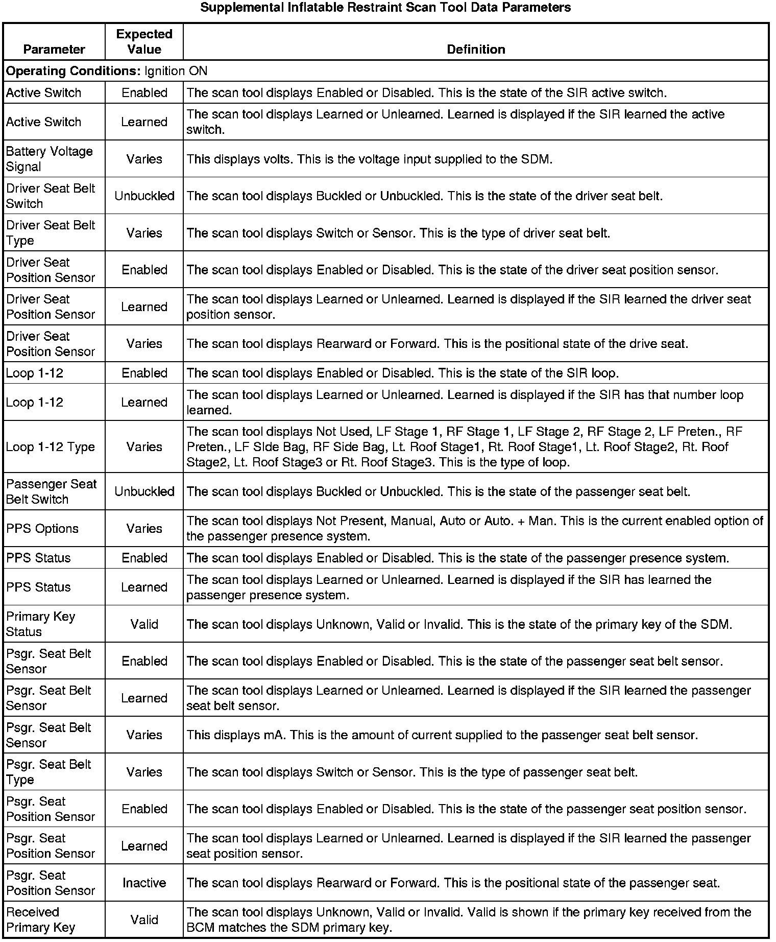 Inflatable Restraint Sensing and Diagnostic Module Scan Tool Information