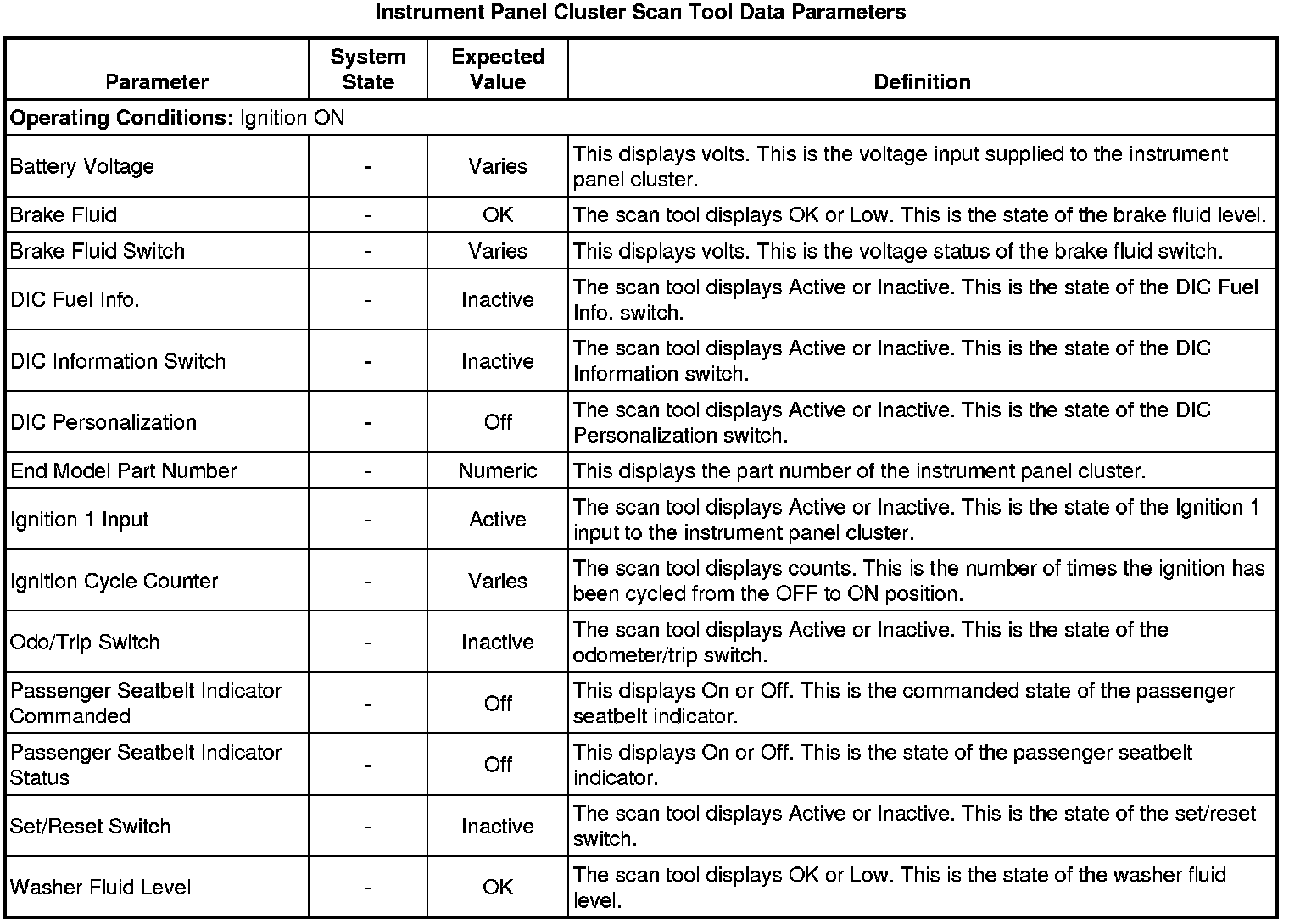 Instrument Cluster Scan Tool Information