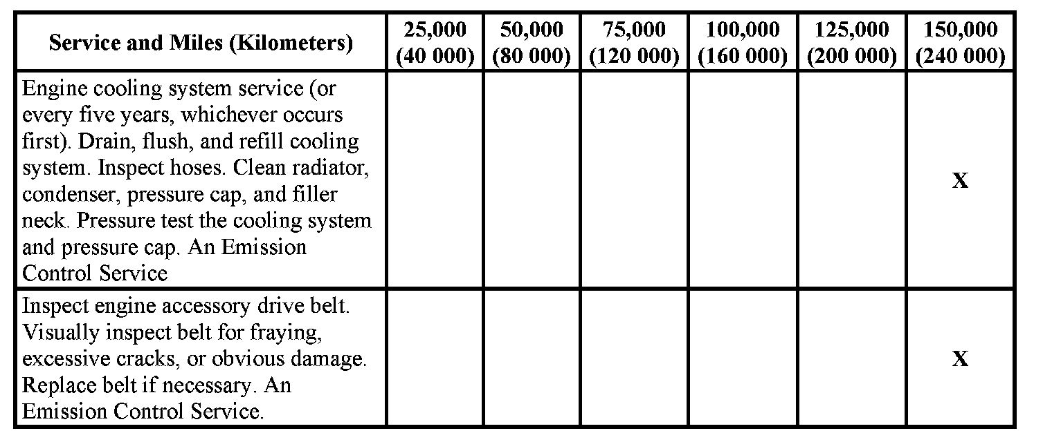 service (I or II) after the indicated miles (kilometers) shown for each item.