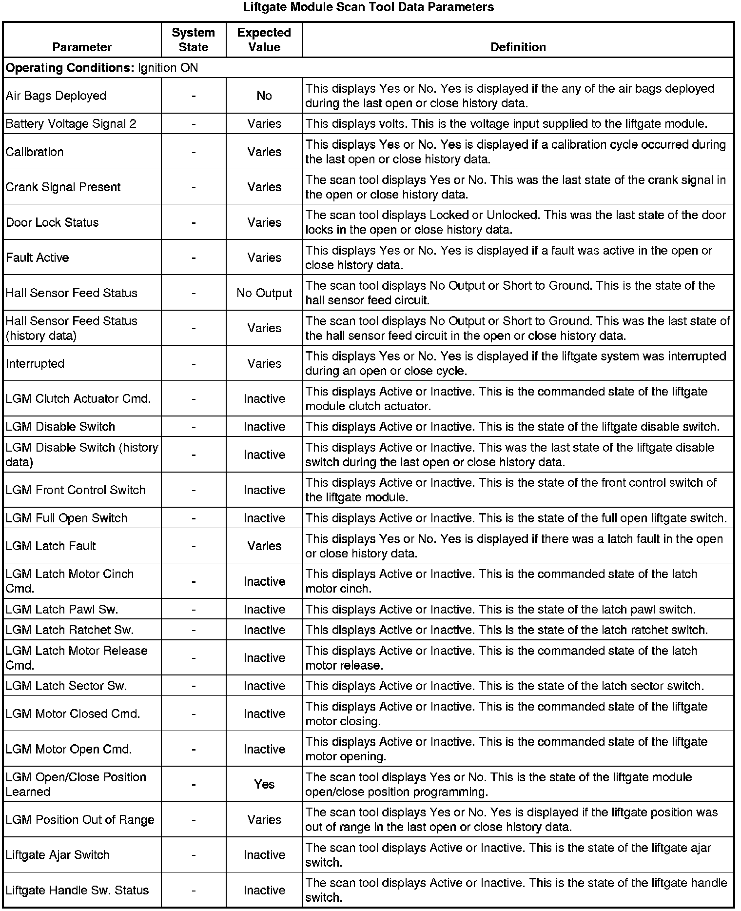 Liftgate Close Actuator Motor Control Module Scan Tool Information