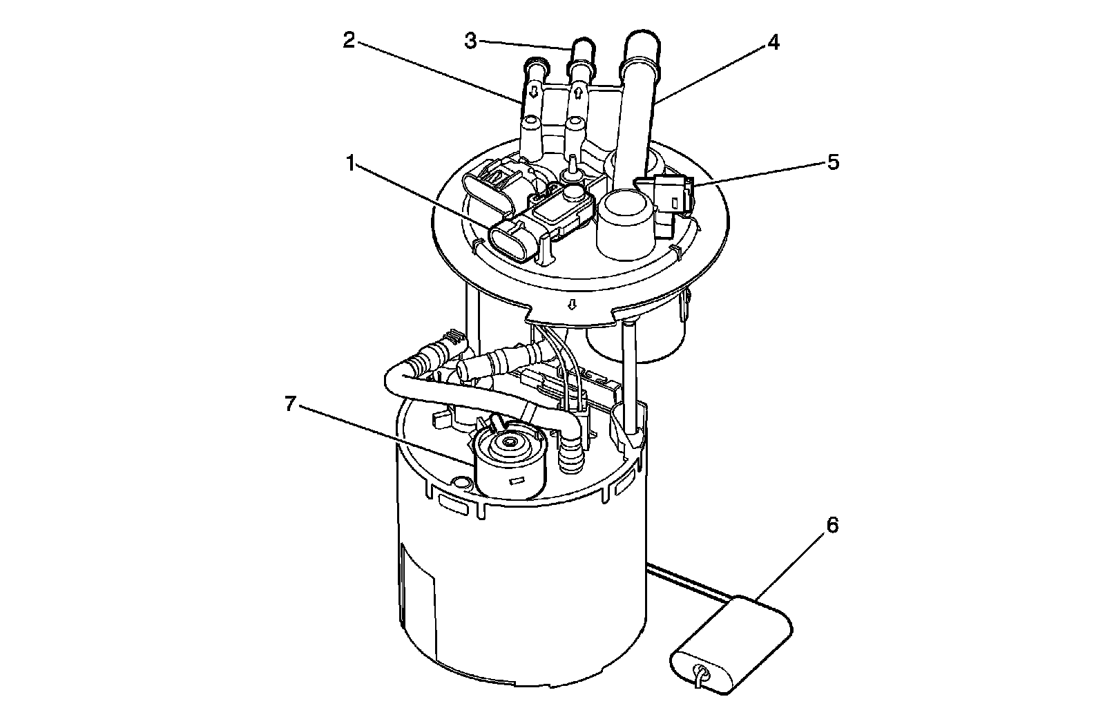 The fuel sender assembly consists of the following major components: