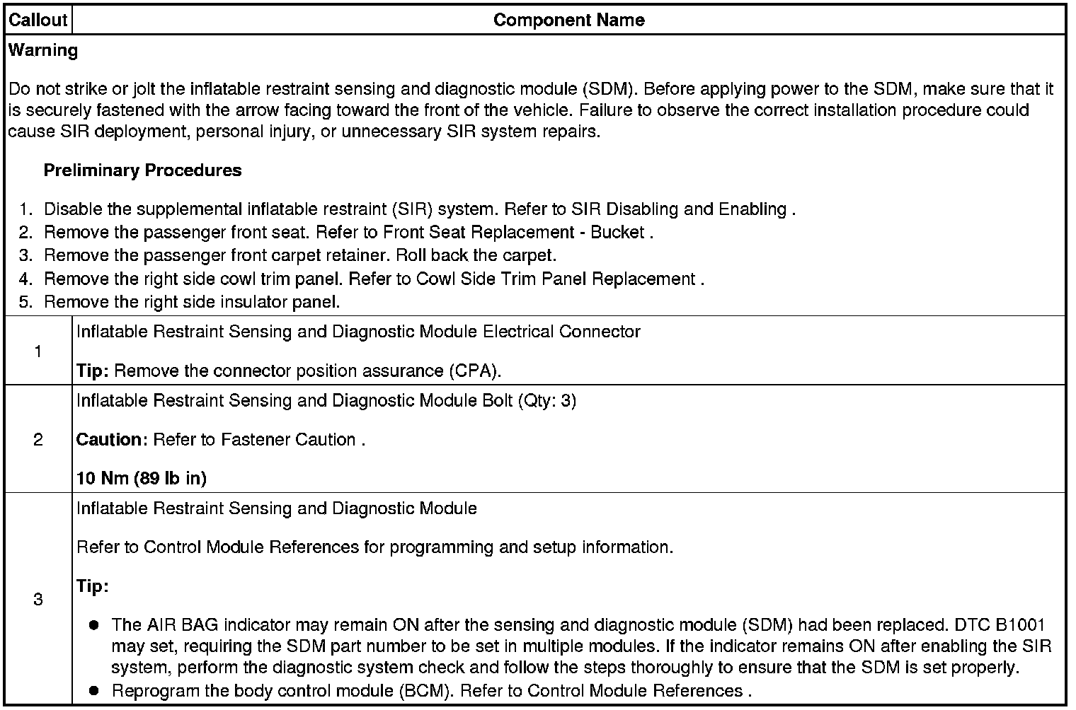Inflatable Restraint Sensing and Diagnostic Module Replacement