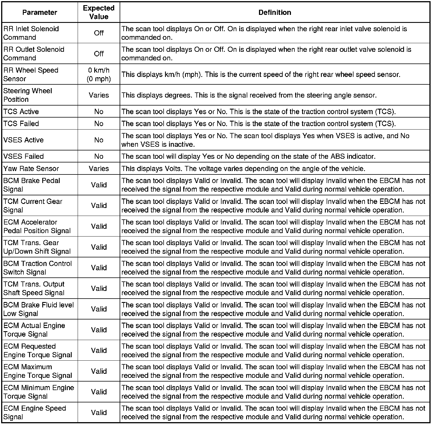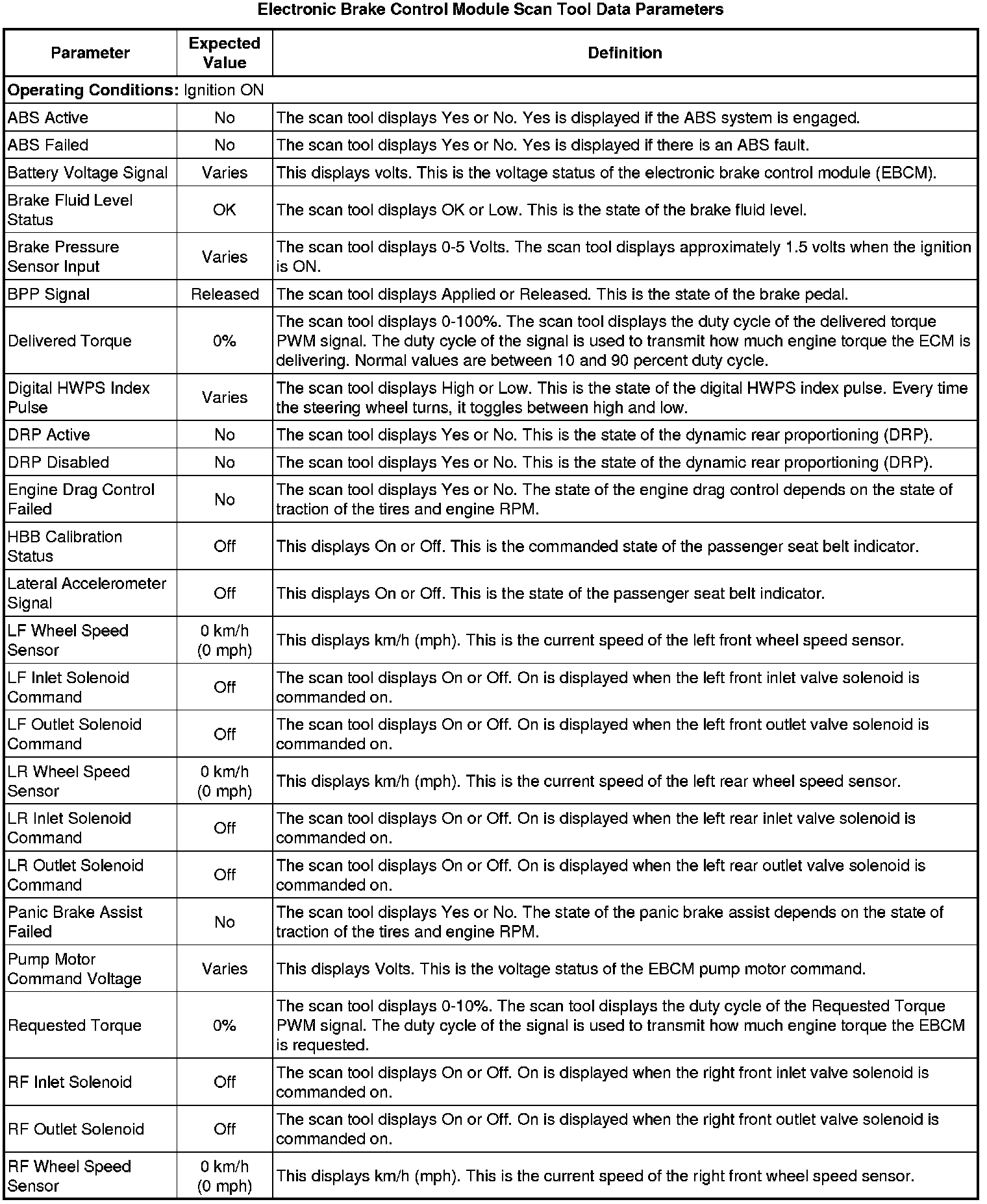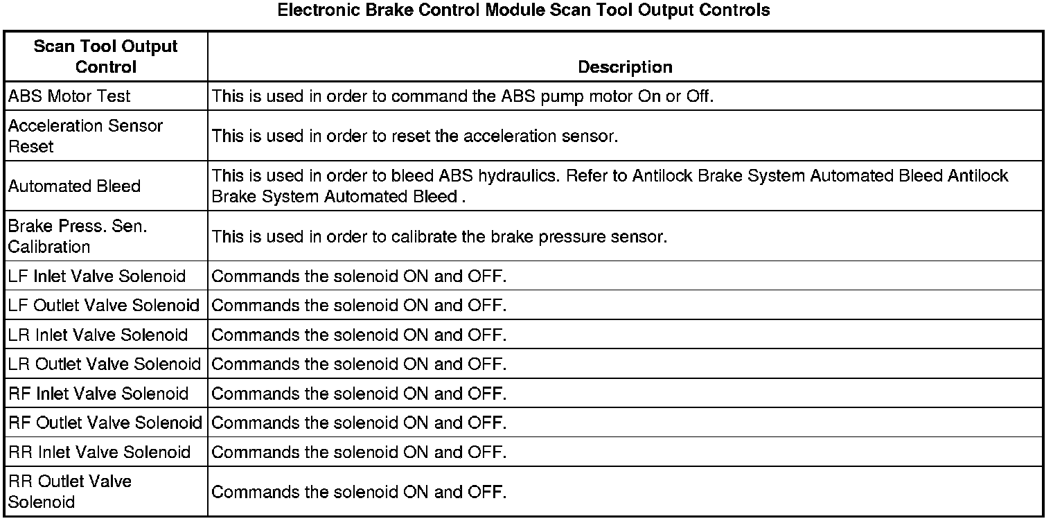 Electronic Brake Control Module Scan Tool Information (Non-Hybrid)