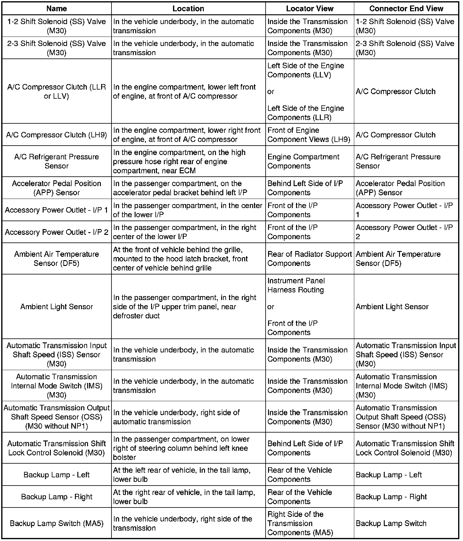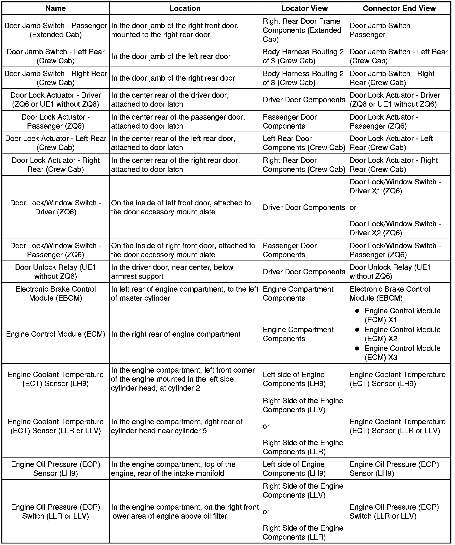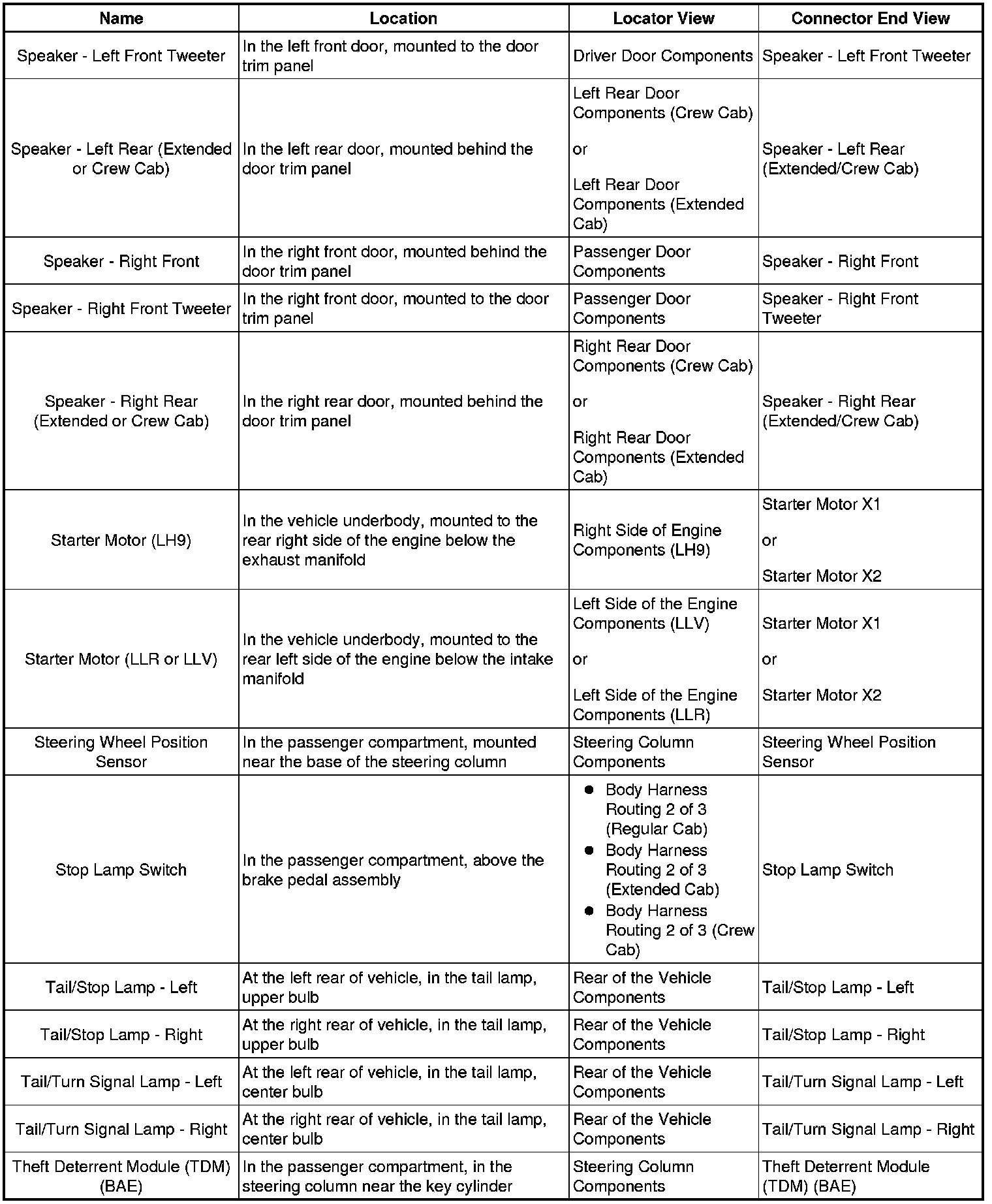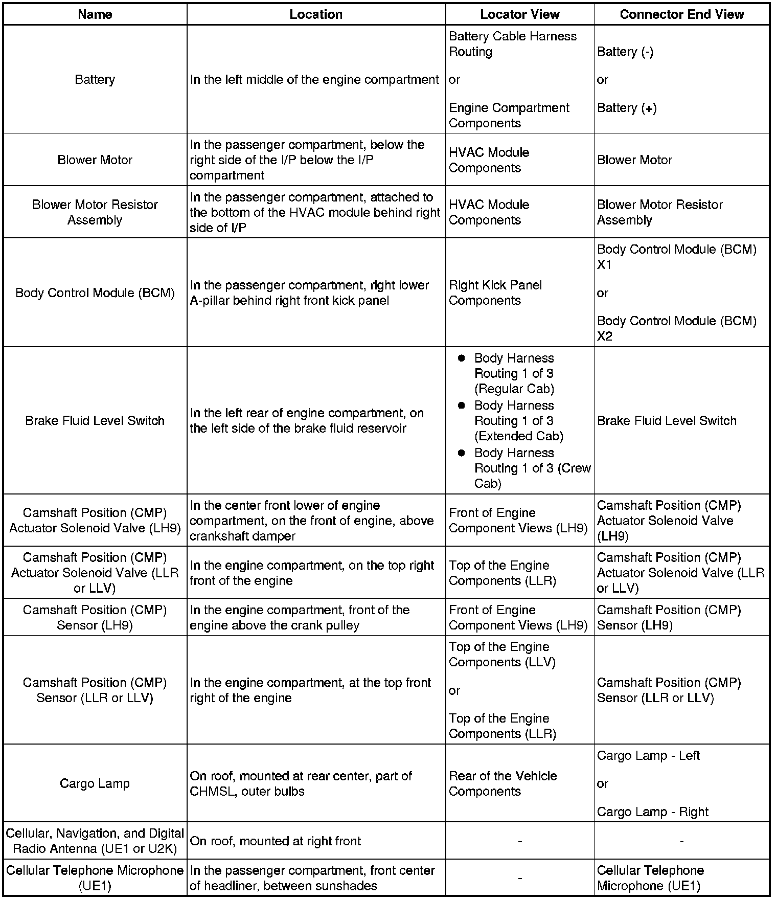 Master Electrical Component List