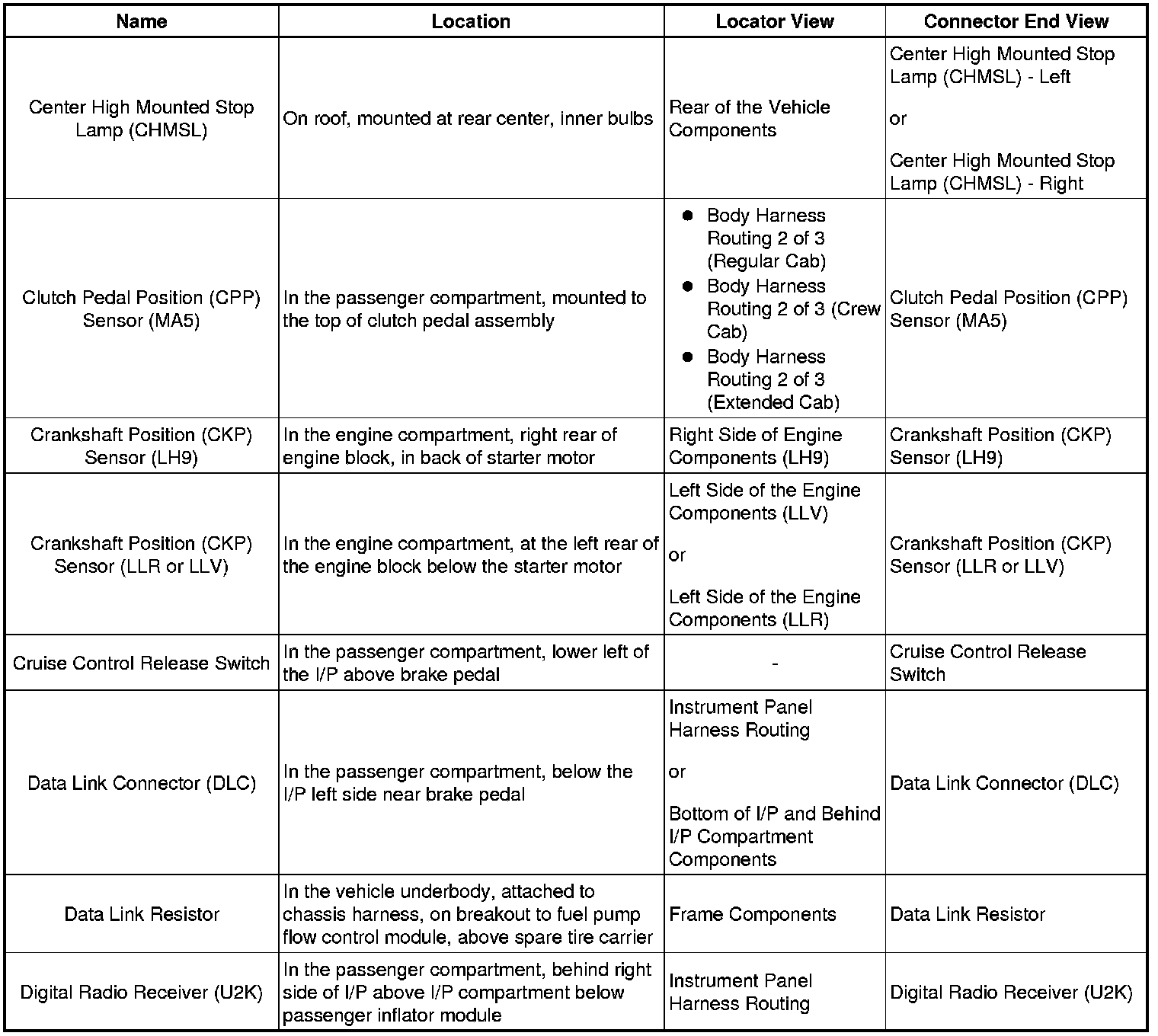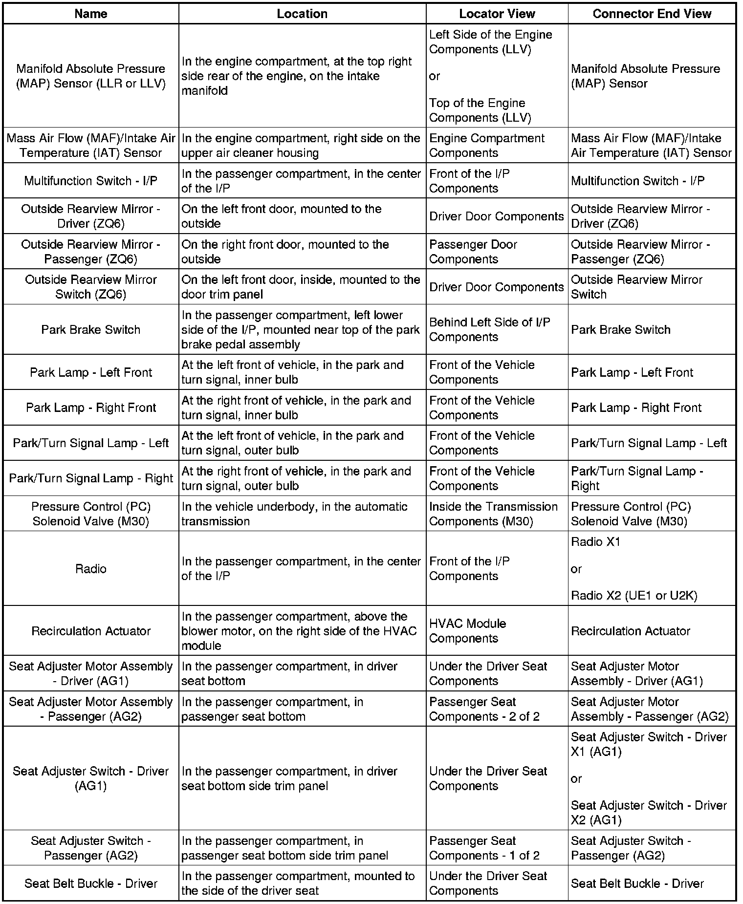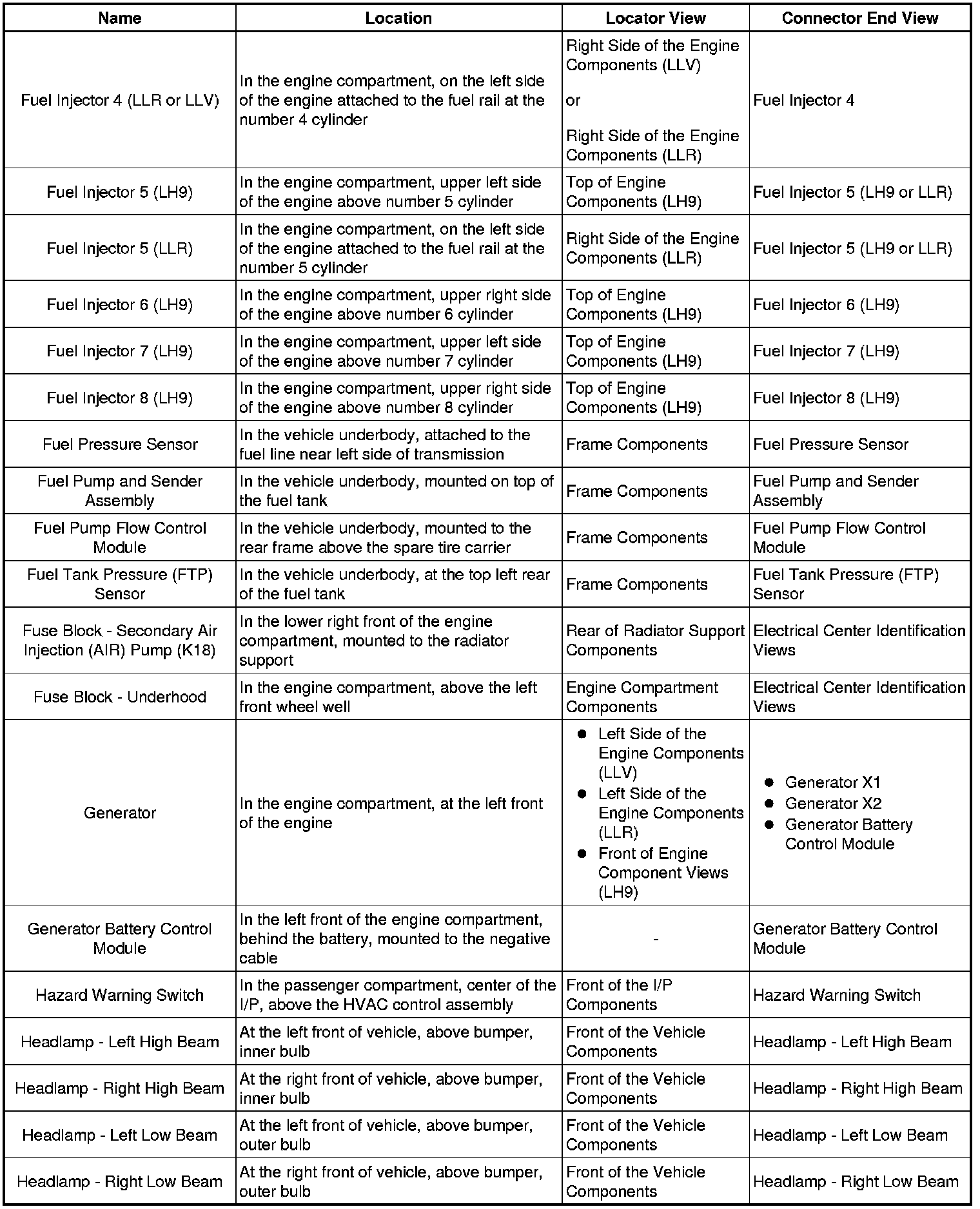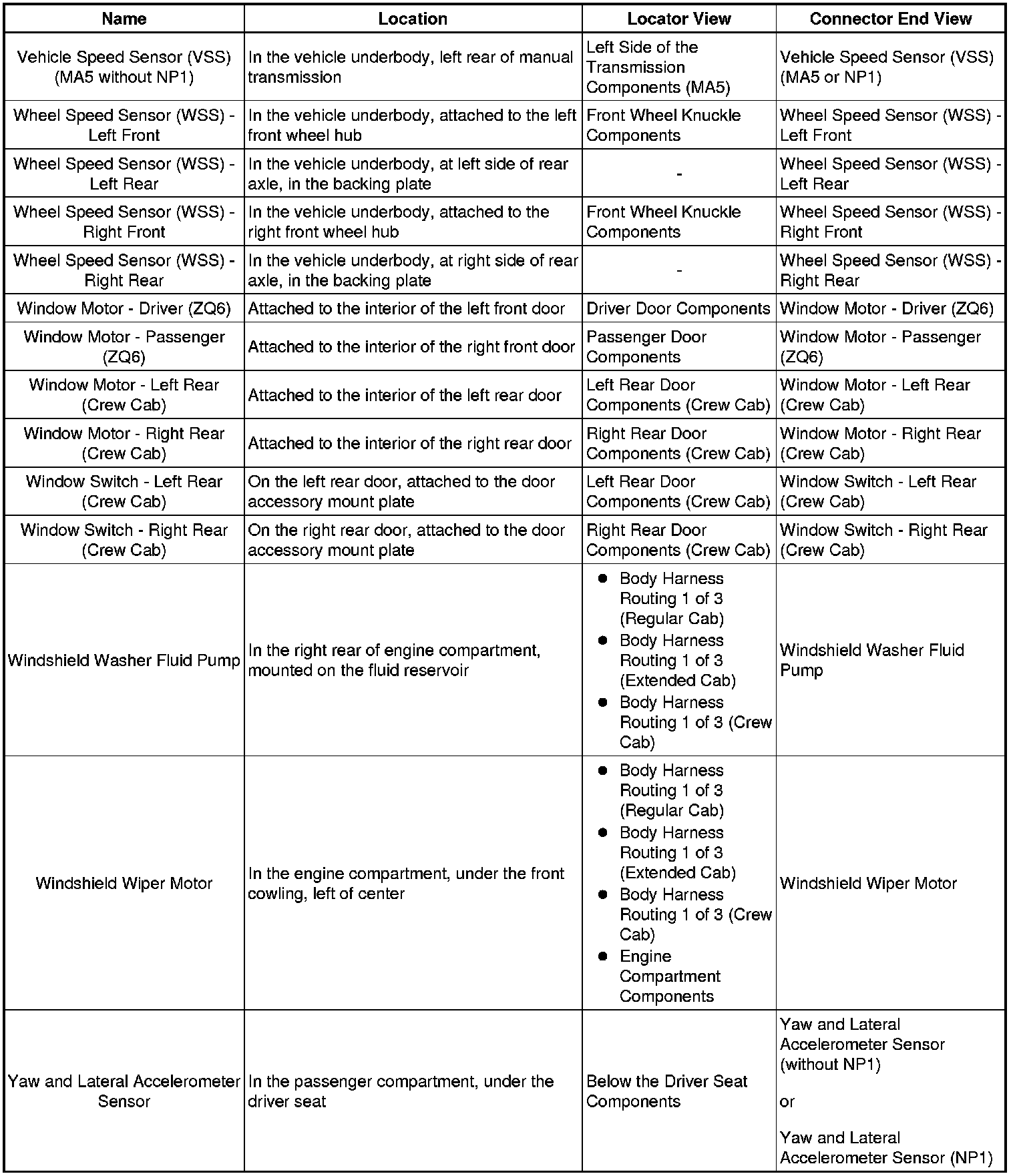 Master Electrical Component List