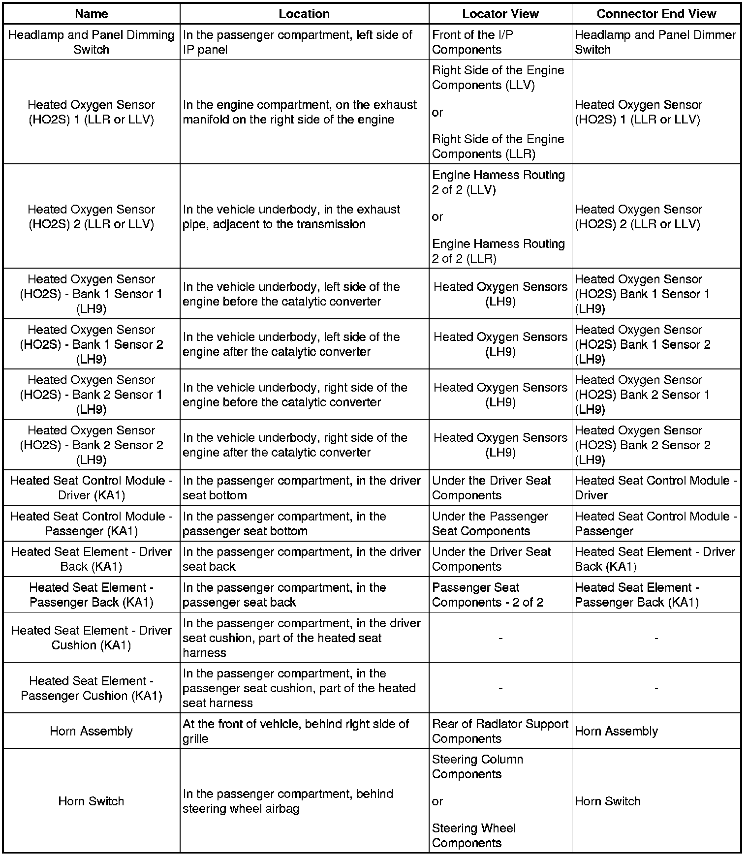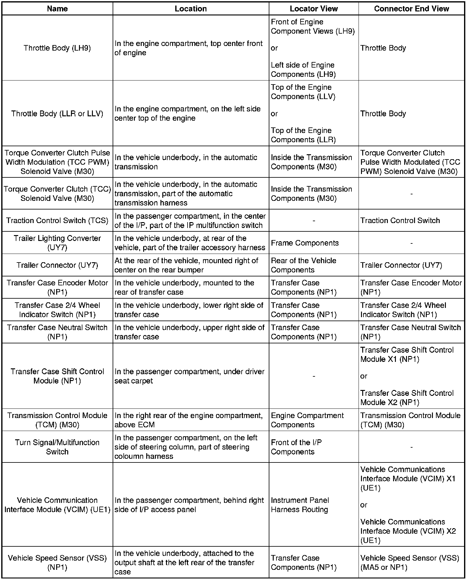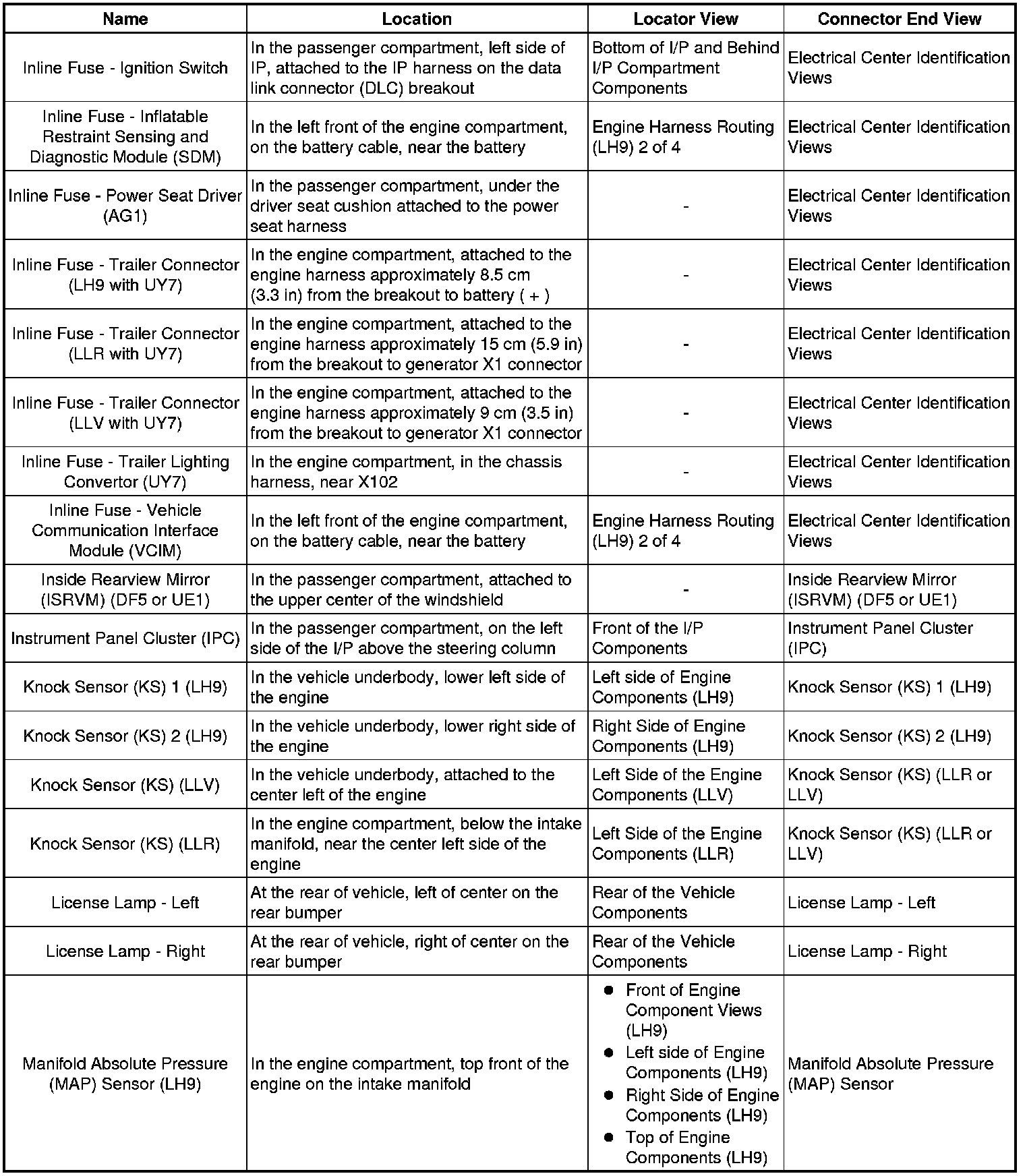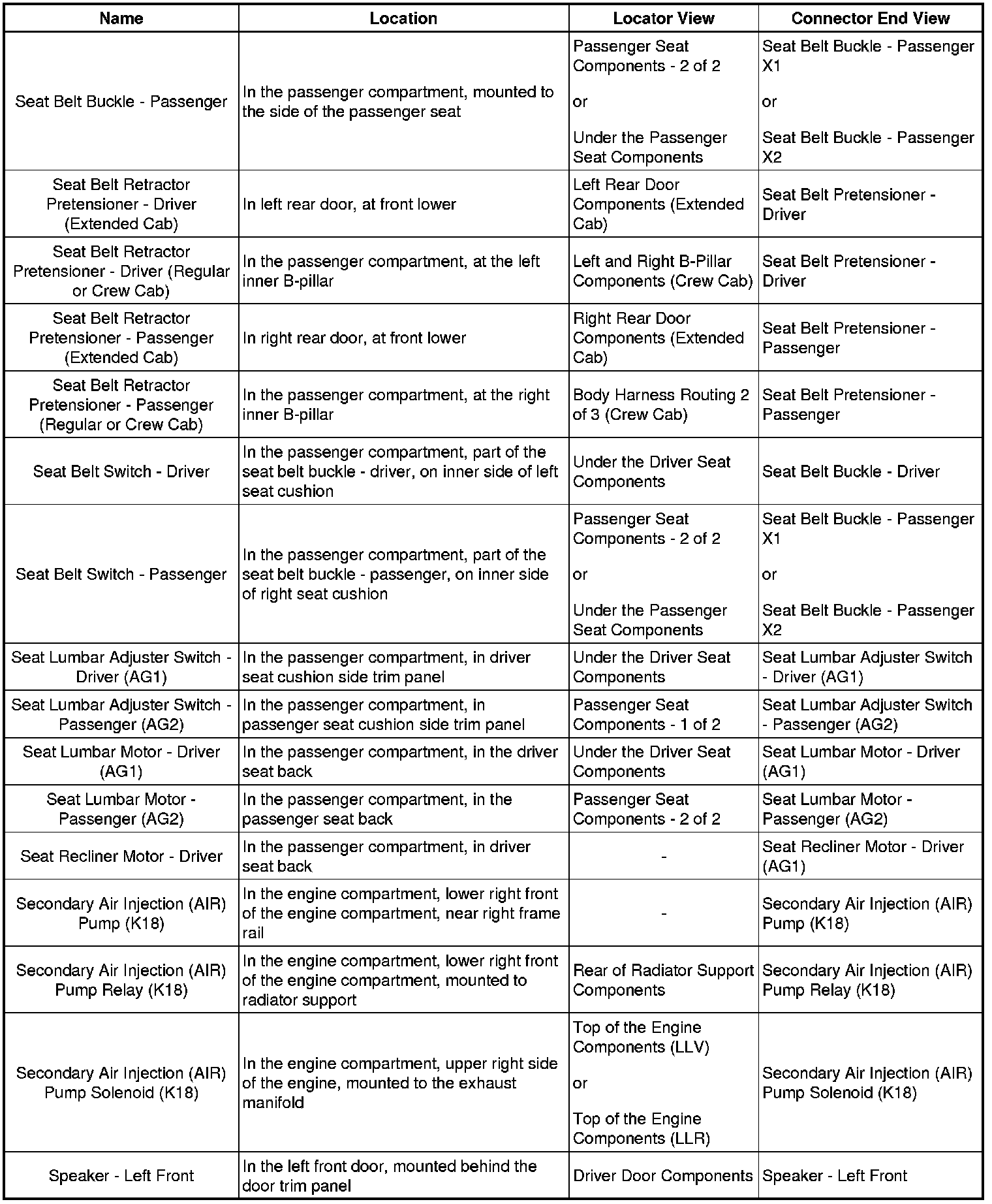 Master Electrical Component List