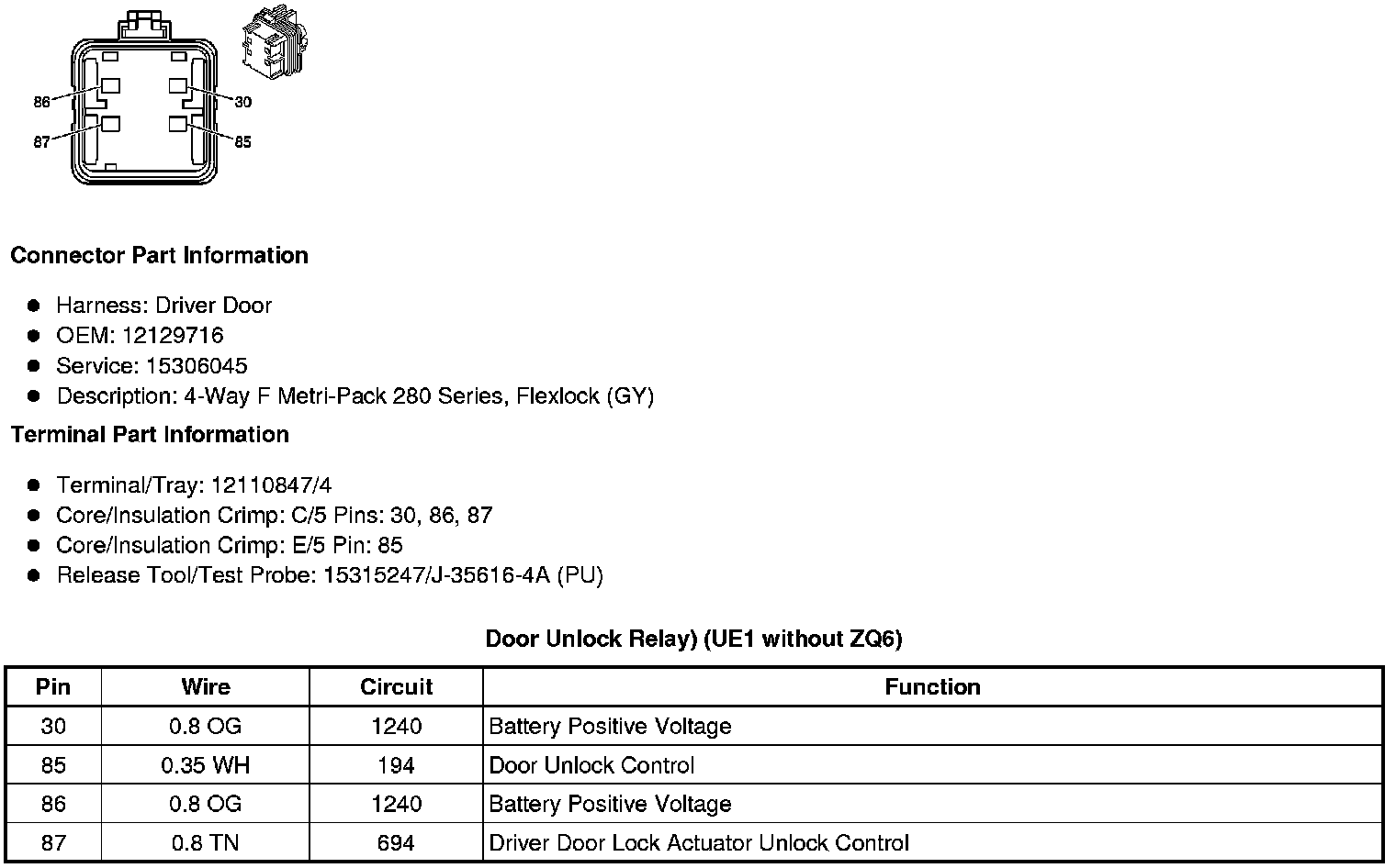 Door Unlock Relay (UE1 without ZQ6)